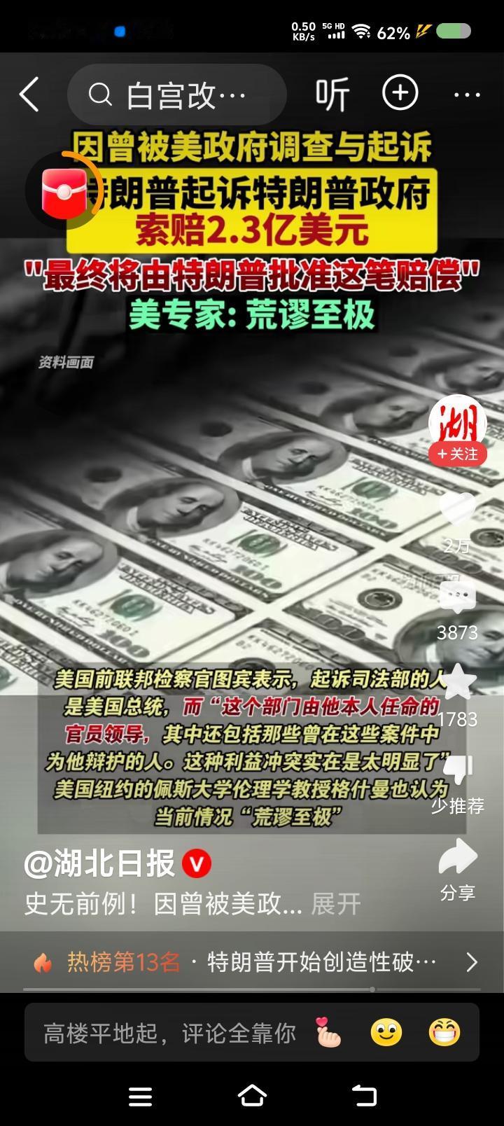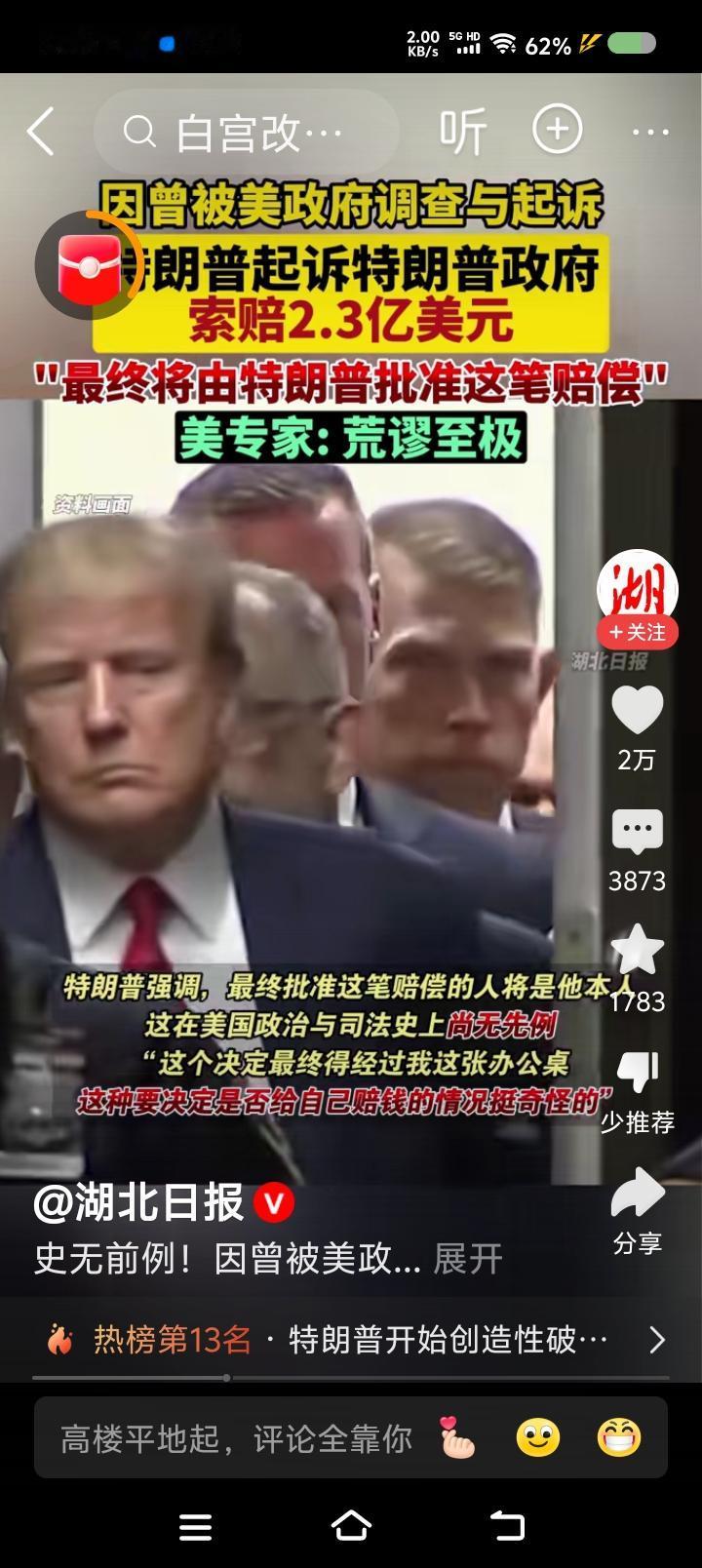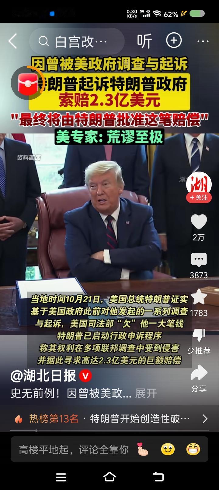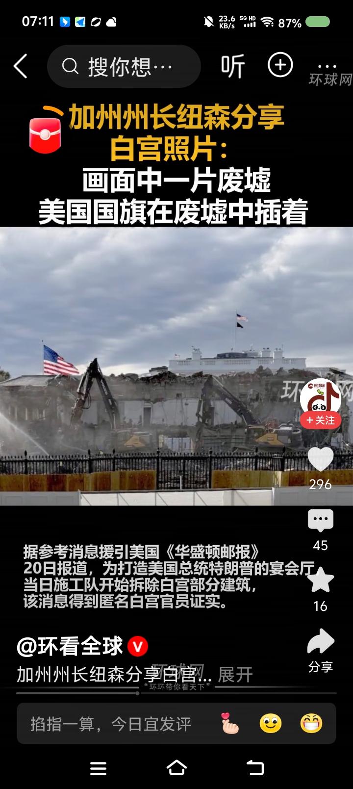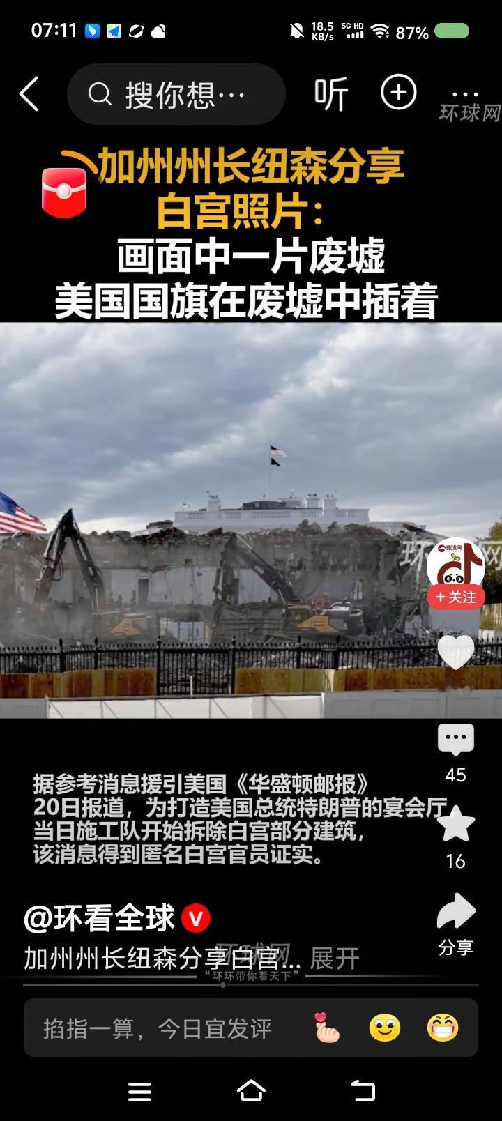 干脆,特朗普改名“特拆谱”!—— 一大早,三则新闻把我震惊了:一、特朗普起诉特朗普政府,索赔2.3亿美元。最终,由特朗普批准这一赔偿。 二、美国政府“关门”三周了,百万政府雇员处于无薪状态。不少人凭工作证领救济品。 三、特朗普下令拆除白宫东侧某建筑,改造成宴会厅。希拉里痛批此举搞破坏;加州州长纽森分享了拆除照片,美女国旗在废墟中。 特朗普声称,不花纳税人的钱。 点评: 一、司法部调查起诉特朗普是哪一年?美国政府部门能亲自或通过检察机构起诉现任总统? 二、雇员没饭吃?不急!找特朗普!他家粮食吃不完! 三、有报道称,被拆的建筑历史悠久。特朗普这个商人,尊重传统么?拆建计划合法么?他怎么不把主体建筑拆了?怎么不把国会、法院、海外基地全拆了?干脆叫“特拆普”得了!