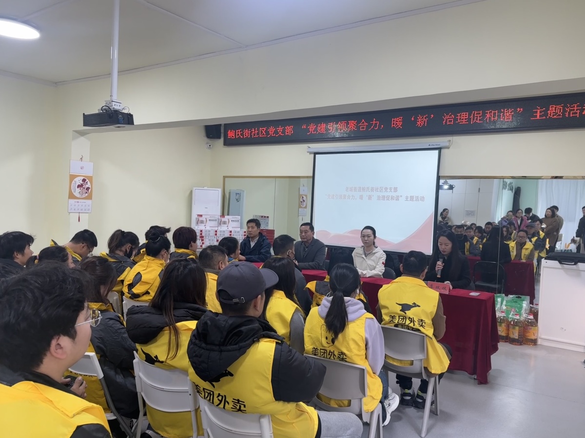 当天,鲍氏街社区党支部联合街道党建办、工会开展“党建引领聚合力,暖‘新’治理促和谐”关爱新就业群体专项活动,为快递员、外卖配送员等一线劳动者送上“暖心礼包”。
