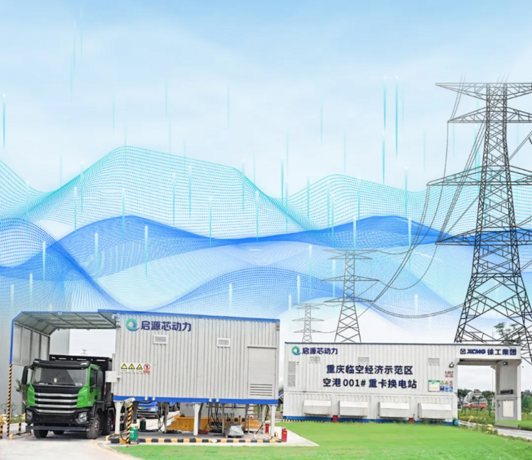 基于V2G技术,启源芯动力通过将电池资源聚合,以虚拟电厂模式参与电力辅助服务市场。在电网低负荷时段充电,降低峰谷差异,促进电力供需平衡和新能源消纳,缓解电网运行压力,让每一座启源重卡换电站都成为一座城市储能站。