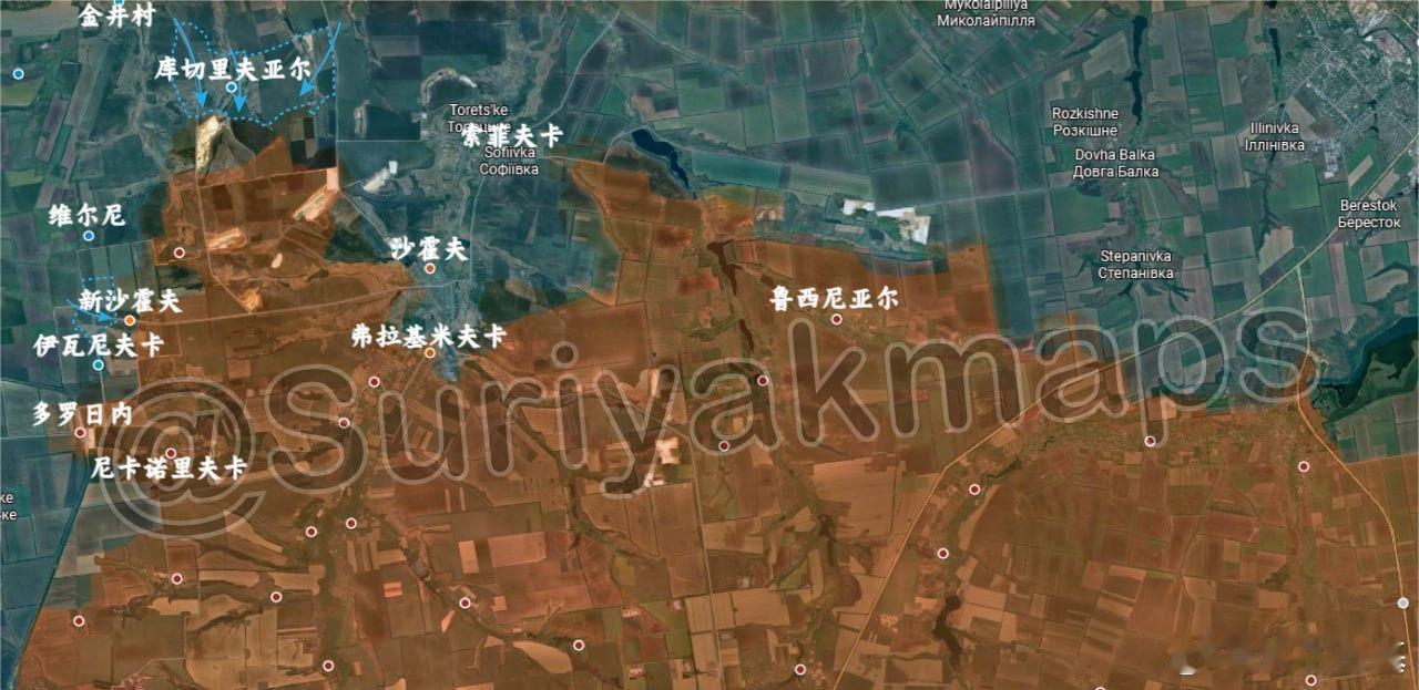 2、多布罗皮利亚:乌克兰军队成功收复库切里夫亚尔北郊及其周边战壕。此次推进使乌克兰军队得以在近期完全收复库切里夫亚尔地区。此外,乌克兰军队对新沙霍夫发动了新的进攻,并收复了该村西郊。