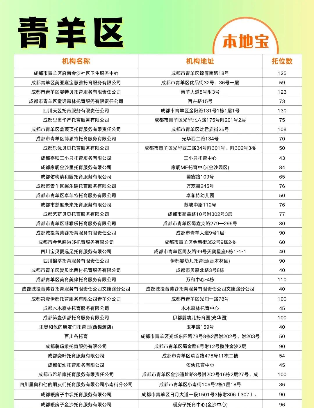 官方公布!成都2025最新最全托育机构名单! 成都2025最新最全的备案托育机构名单!成都23区(市)县都有→机构 托育机构名单 成都幼儿园 学龄前儿童 备案托育机构 成都托育
