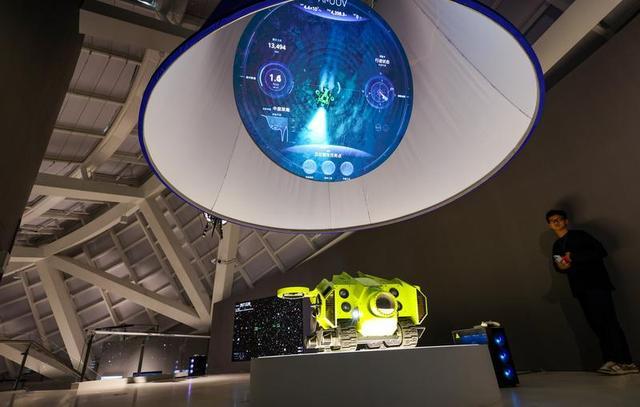 余杭美术馆现场展出中国美术学院创新设计学院计算机艺术研究所的作品《深海智能无人潜航器AI-UUV》