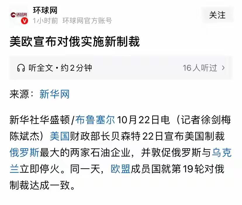 就在刚刚! 特朗普对俄罗斯祭出终极制裁! 10月22日,特朗普突然宣布取消与普京的布达佩斯峰会计划,直言"不想再浪费时间"。这场备受期待的美俄元首会晤就此夭折,取而代之的是美国史上最严厉的对俄制裁方案。 "每次我和普京谈得不错,但局势从未好转。"特朗普在白宫对记者这样解释他的决定。随着这番话,美国财长贝森特同步宣布了对俄罗斯石油巨头的全面制裁——两家顶级石油公司及其30余家子公司被一网打尽,全部列入制裁黑名单。 这次制裁的厉害之处在于其"连坐"条款。任何与这些俄企进行重大交易的外国金融机构,都可能面临美国的二次制裁。这把达摩克利斯之剑不仅悬在俄罗斯头上,更让与俄油企有业务往来的中国企业倍感压力。 据悉,被制裁的俄罗斯石油巨头控制着全俄40%的原油产量,其每日对华出口量高达80万桶。虽然中国官方强调"反对单边制裁",但多家中国企业已开始紧急审查与俄方的合作项目,担心成为美国次级制裁的目标。 这场制裁风暴来得突然却早有征兆。就在特朗普取消会晤前,匈牙利总理欧尔班还在积极斡旋,希望促成"布达佩斯和谈"。但俄军在顿巴斯前线的持续进攻,让特朗普彻底失去了耐心。 值得注意的是,制裁名单中特别标注了涉及"石油和天然气生产、加工和销售"的全产业链企业。这意味着从勘探到加油站,俄罗斯能源产业的每个环节都将受到冲击。分析人士认为,这可能是美国为彻底切断俄罗斯战争资金来源的致命一击。 各位读者你们怎么看?欢迎在评论区讨论。美国特朗普关税 特朗普征加关税 特朗普政策变脸 特朗普外交突袭 美国特朗普关税 特朗普征加关税 特朗普政策变脸 特朗普外交突袭 欧盟反击特朗普 特朗普经济困局 特朗普普京会谈