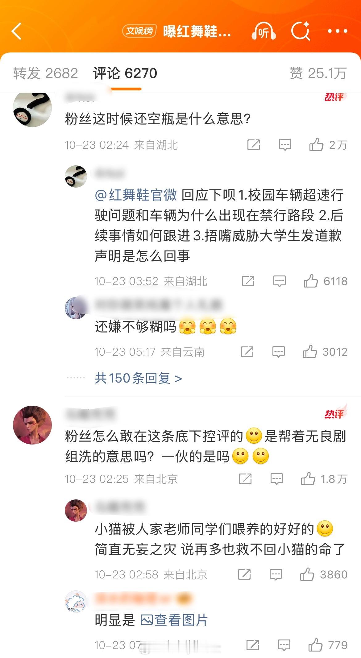 曝红舞鞋剧组开快车撞死猫,凌晨红舞鞋剧组道歉,评论翻车!网友说猫咪是大家共同养的并非流浪猫,其次猫咪明明在车辆禁行路段,什么叫它在车辆附近???更离谱的是周也粉丝无视此事严重性,继续安利空瓶,引发路人反感,现在好像都删了…… 红舞鞋