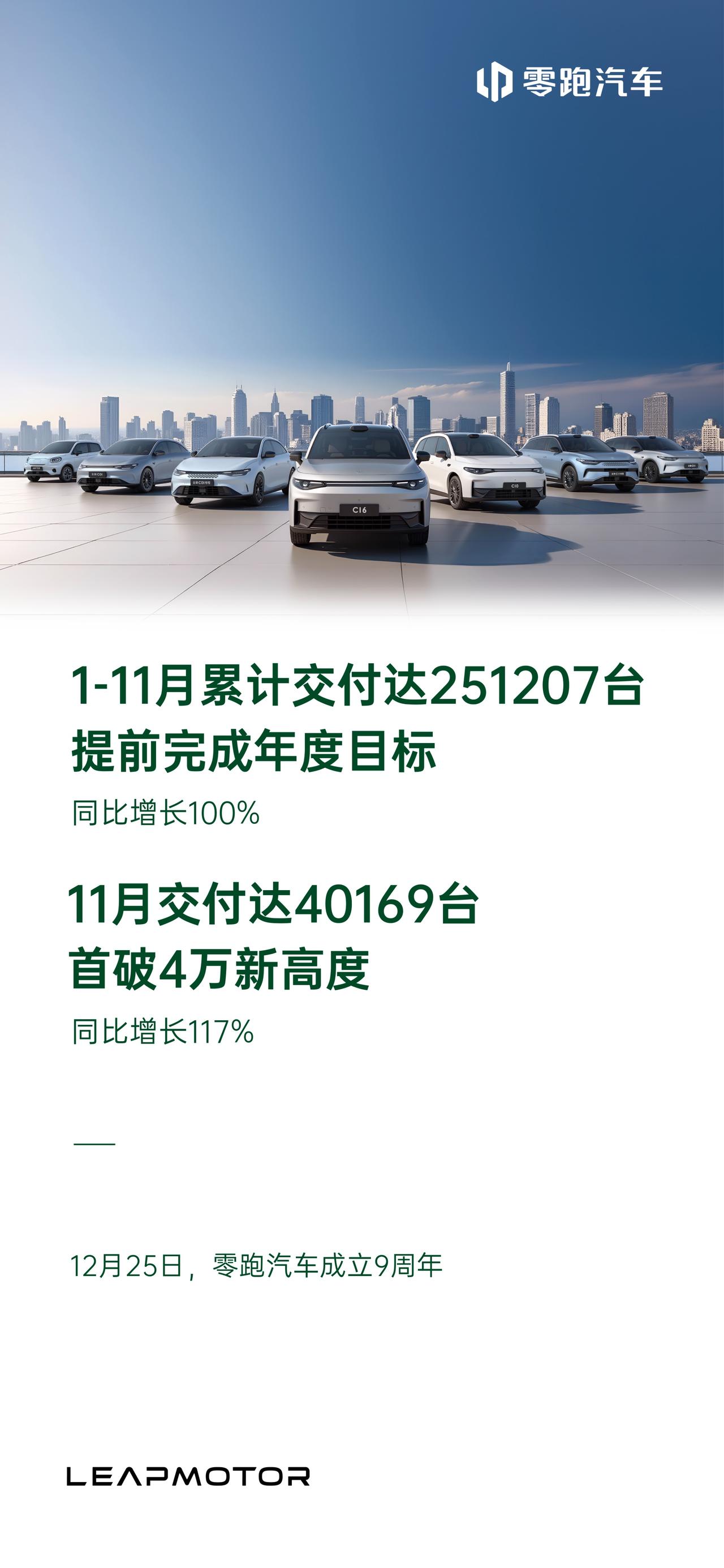 零跑11月份的交付量新鲜出炉,首次突破4万,达到40169台。是的,你没有听错,