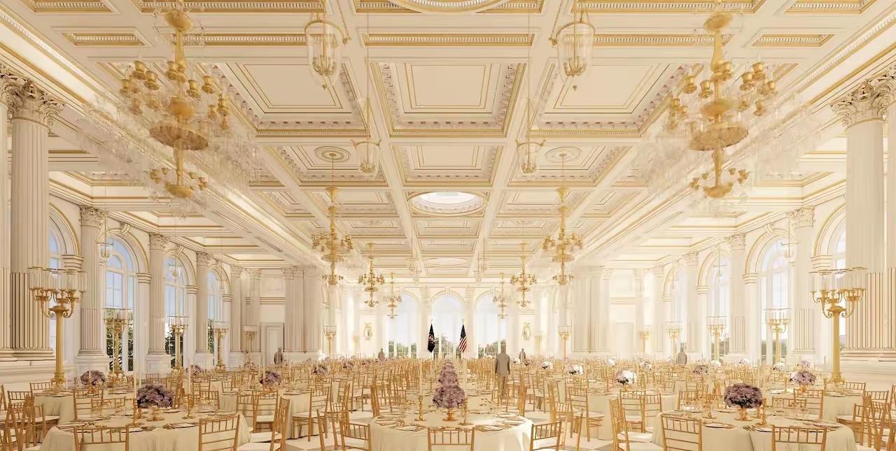 特朗普果然是对金色情有独钟——女人得是金发美女,宫殿也得金碧辉煌…… 这回川普向媒体晒出宴会厅效果图,好家伙,照这个标准整下去,白宫怕要改名叫“白金汉宫”了[捂脸] 不过算算时间,他任期只剩三年多,设计加施工,还有装修,这金灿灿的餐厅……还赶得上用吗? 网友纷纷表示:这还不简单,交给“基建狂魔”安排,钱到位,三个月给你搞定。 要是面子上挂不住,没事,可以走“史密斯专员”渠道,转个包嘛,皆大欢喜[我想静静][我想静静]