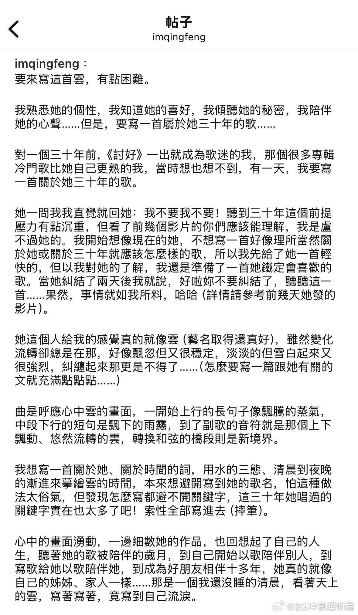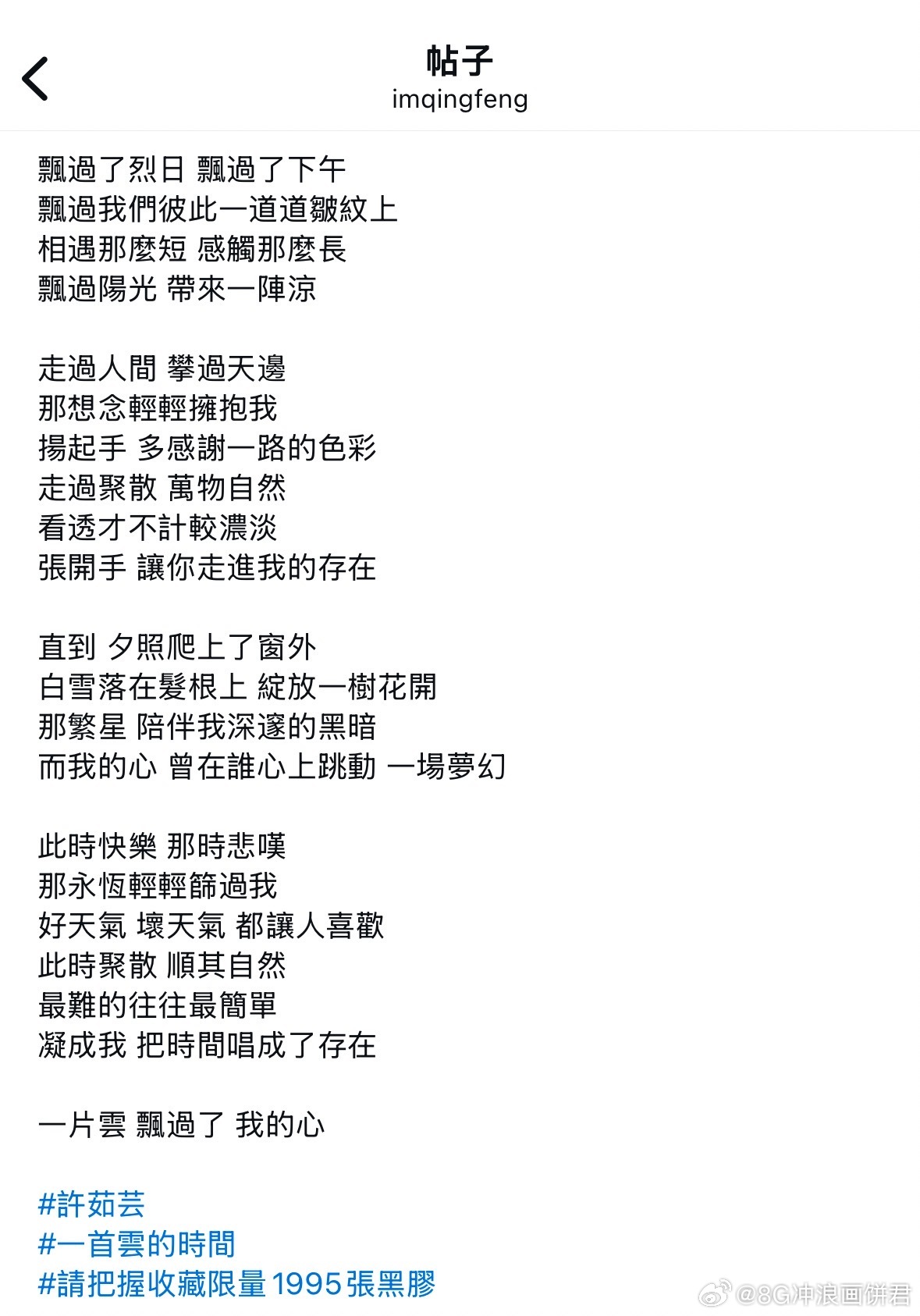 吴青峰[超话]许茹芸[超话] 吴青峰发ins长文