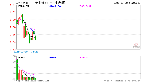 10月23日,截止午间收盘,创业板综ETF银华(159288)跌1.56%,报0.946元,成交额291.34万元。创业板综ETF银华(159288)重仓股方面,宁德时代截止午盘涨0.30%,中际旭创跌2.48%,东方财富涨0.08%,迈瑞医疗跌0.41%,新易盛跌5.75%,胜宏科技涨1.33%,阳光电源涨2.14%,温氏股份跌0.17%,汇川技术跌1.22%,蓝思科技跌2.65%。