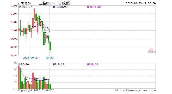 卫星ETF(563230)业绩比较基准为中证卫星产业指数收益率,管理人为富国基金管理有限公司,基金经理为曹璐迪,成立(2025-09-04)以来回报为-2.65%,近一个月回报为-2.98%。