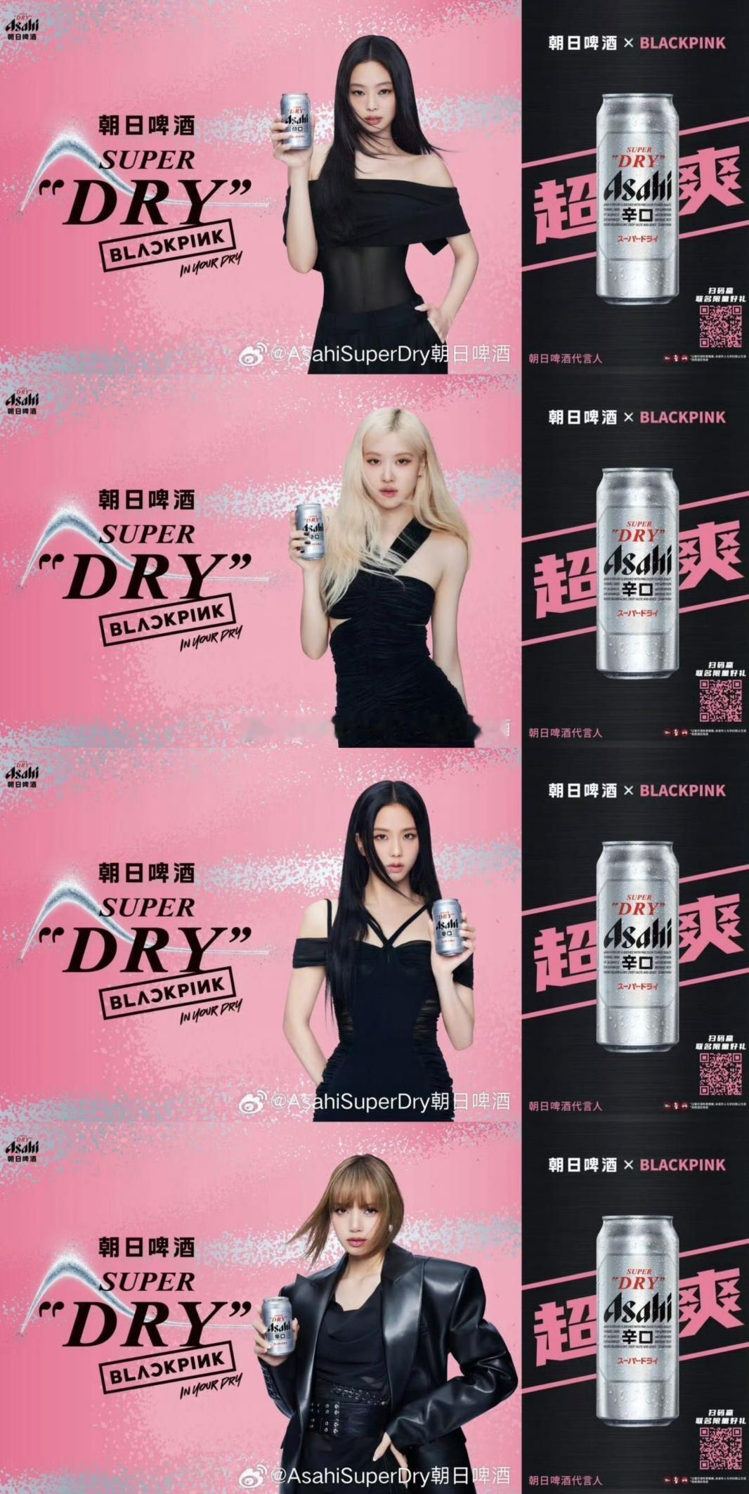 全球顶流和百年啤酒的携手,很难不引人注意啊! 朝日啤酒签约BLACKPINK,上月在网上看到了中国区的宣传,BLACKPINK全员黑色系代言大片,配上朝日啤酒的粉色系包装盒,“粉墨”既是彼此的坚定选择,也是对中国本土化市场的爱意。更有意思的是每一款产品上,大家都能找到不同成员的形象图,简直就是可以收藏的免费小卡!