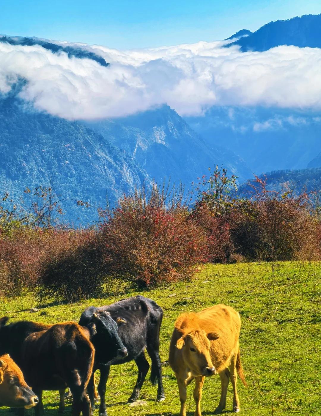 高山牧场🐄彩林峡谷🍂——老鸭山赏秋~ 10🈷️23/25/26车程近,彩林峡谷色彩艳丽,去看高山牧场的牛马——老鸦山 风吹一片叶 万物已惊秋 秋来赏彩林 不负年华不负卿 🌟当秋风渐起,老鸦山便悄然换上了华丽的彩装。从山脚到山顶,不同的树种演绎着各自的色彩传奇。空气中弥漫着淡淡的草木香,混合着落叶腐烂后那独特的泥土气息,让人深深陶醉。抬头望去,天空湛蓝如宝石,与这五彩的树林相互映衬,美得如梦如幻。 🌟老鸦山距离成都约2小时车程,位于汶川耿达附近。先是一段村公路,然后一段土路到牧场,沿途彩林灿烂,松林金黄。当然,老鸦山没有老鸦就像老婆饼里没有老婆,但是彩林是卧龙里面绝对首屈一指的。 🌟小路两公里就到一个牧场草坪,牧场里牛儿悠闲自得。天朗气清的时候,远处的雪山依稀可见。老鸦山,不必成为梵高笔下的画卷,你就是画卷本身。 🚌车程预计:2小时 🥾徒步路程:本次徒步往返约11公里,累计爬升770米。 💰人均消费:88 🎫门票:清洁费10 ♥️关注蜜多徒步,每周体验不同小众美景 户外徒步 成都周边游 周末去哪儿 徒步路线推荐 秋天去看彩林 徒步赏秋好去处 1日游 团建策划 徒步圈