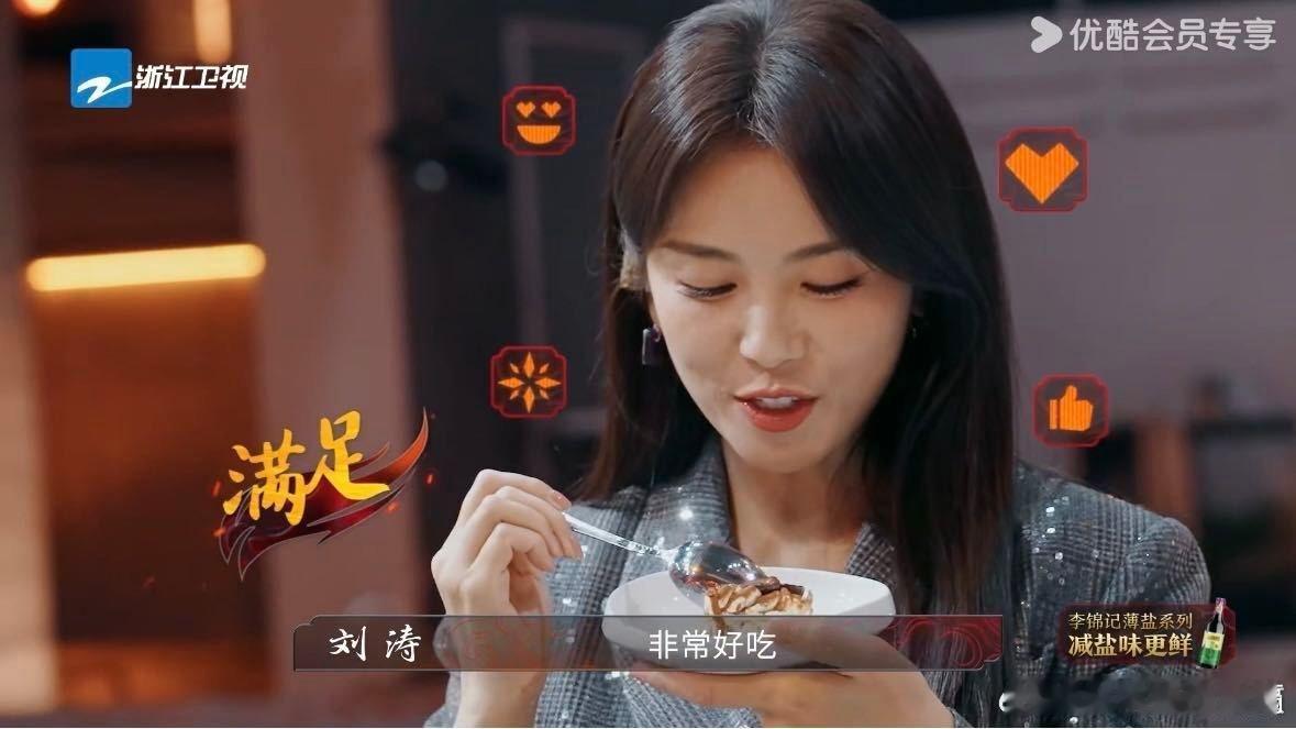刘涛眼里全是对自己食量的欣赏刘涛在百厨大战里吃上细糠咯,这份非常好吃,每次一吃都