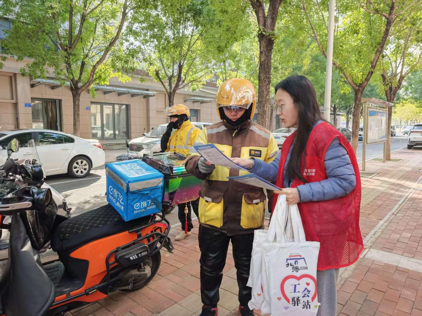 津滨网讯(记者张玮摄影报道)为提升外卖小哥群体的反诈意识,同时传递工会组织的关怀,日前,北塘街道揽涛轩社区工会驿站开展了本次反诈宣传与关爱发放活动,有效实现了“安全宣传+暖心服务”的双重目标。