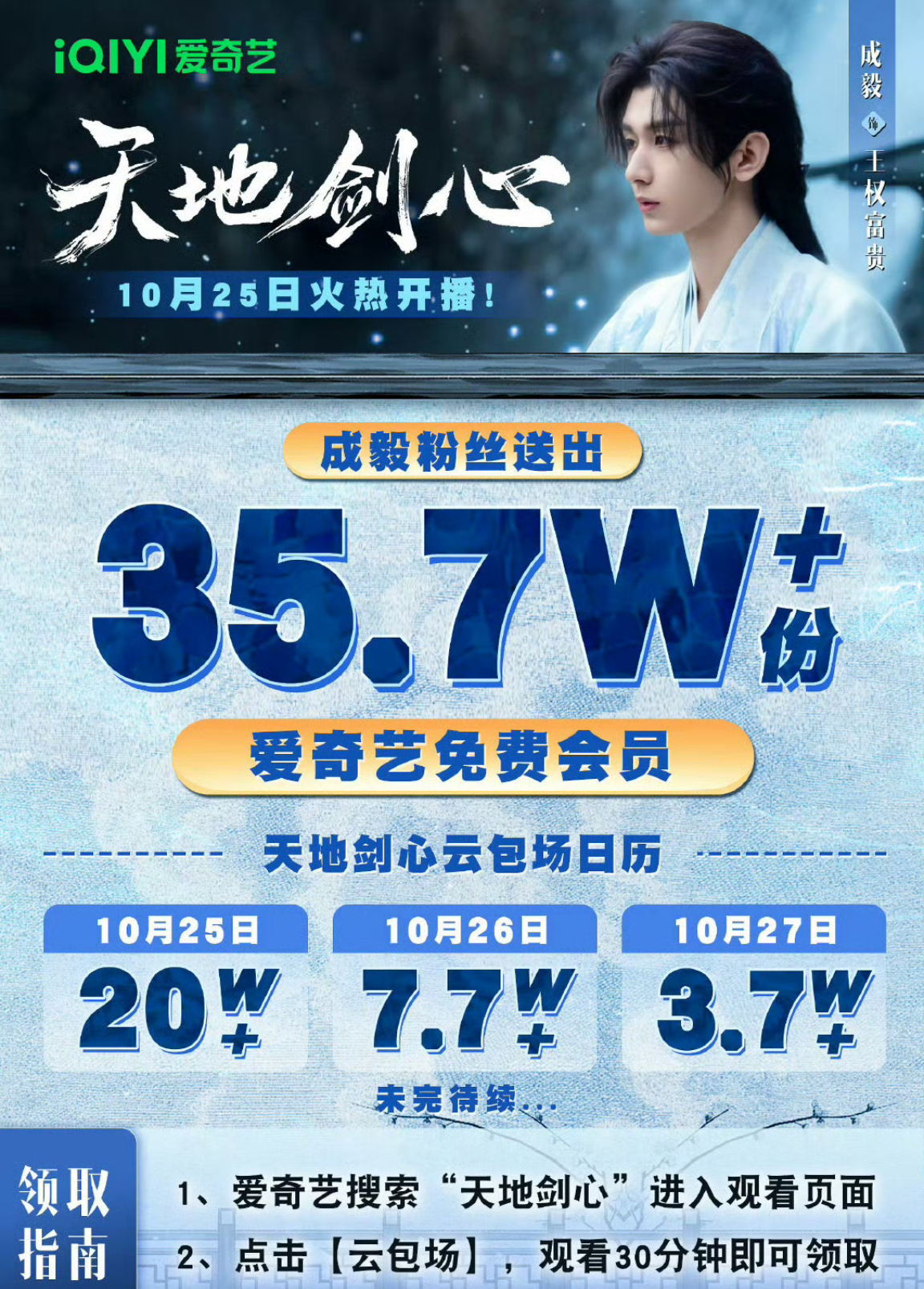 成毅天地剑心百指破4w期待成毅天地剑心王权富贵,成毅粉丝送云包场近36万,成毅天
