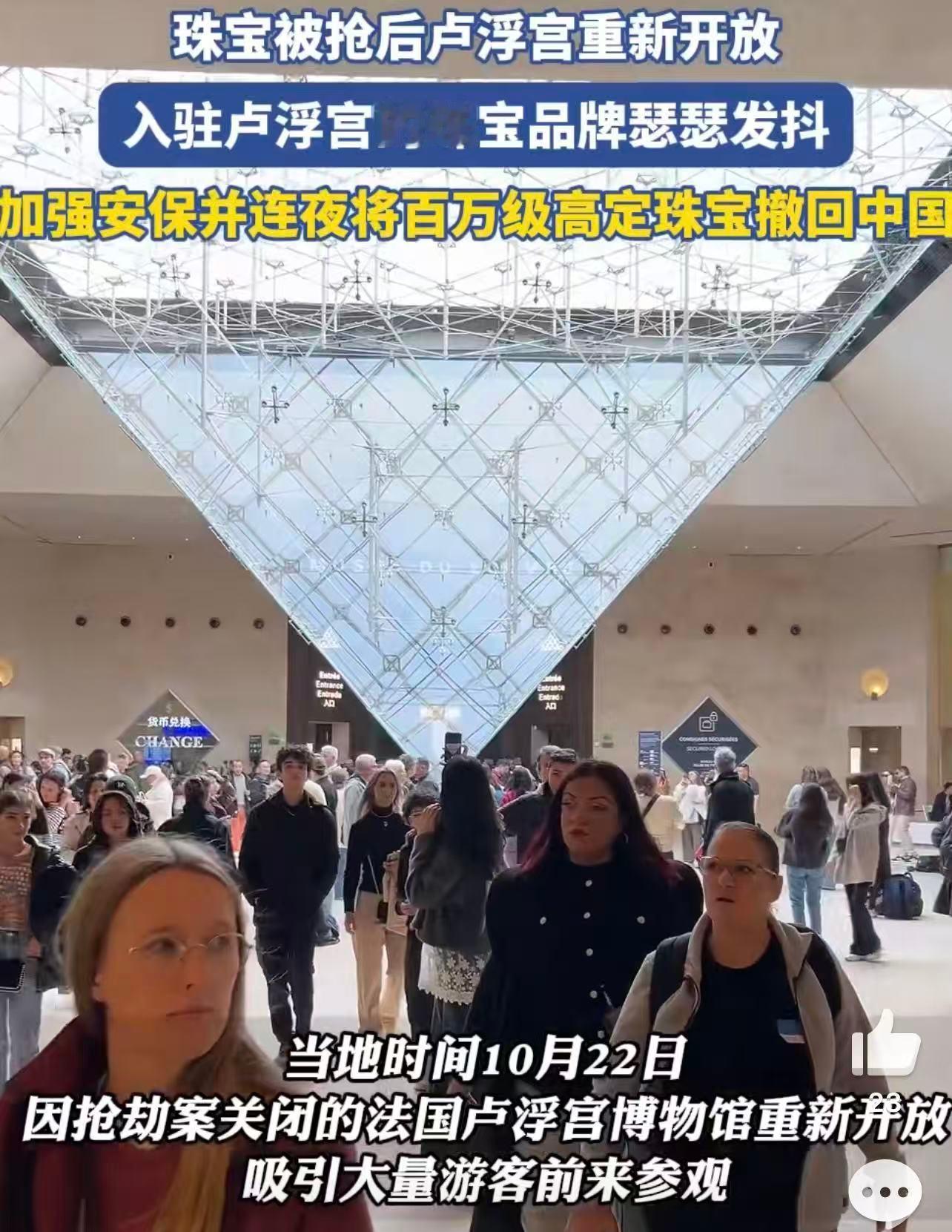 卢浮宫内珠宝店撤回百万珠宝7分钟劫案致7.2亿皇室珠宝失窃,8件珍品仍下落不明。博物馆重启后全面升级安保,在馆珠宝紧急撤回避险。