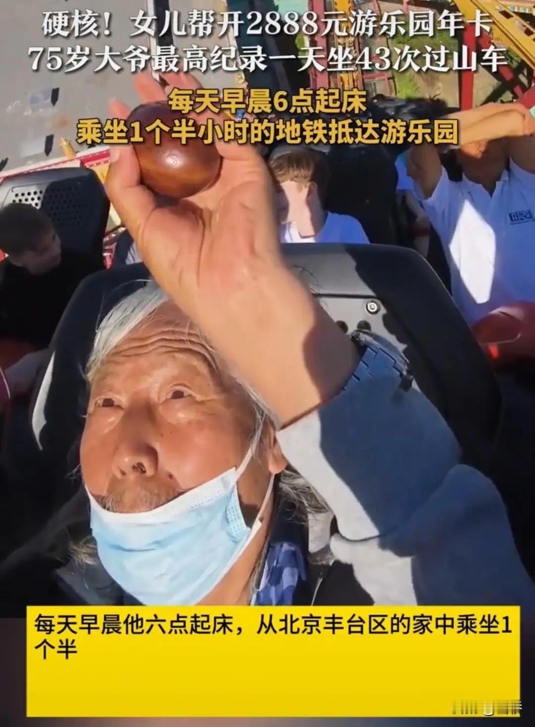 《75岁大爷“霸榜”过山车,日刷43次》 这位75岁的卢大爷,用行动打破了年龄的界限,也让我们重新审视了“年龄只是个数字”的真谛。每天一小时半的地铁旅程,只为那一刻的心跳加速,那一份童心未泯的纯粹。有人或许会觉得他“太老了”,但他用实际行动告诉我们:年龄从来不是限制,而是动力。 或许有人会问:“难道不怕累、不怕危险?”但卢大爷的笑容告诉我们,他的热爱远比这些担忧更强烈。网友们的惊呼“超过60岁就不让坐过山车?”也许是社会的偏见在作祟,但他用行动反击:只要心跳还在,什么都可以尝试,什么都值得去追求。 这不仅仅是一段关于“老去”的故事,更是一堂关于“勇敢活出自己”的人生课。或许,我们都可以从卢大爷身上学到一点:不论年龄多大,心中那份热爱和勇气,才是真正的青春密码。下一次,当你觉得“太老”而放弃时,不妨想想这位“硬核”的大爷,让自己也敢于追梦,敢于突破!卢大叔