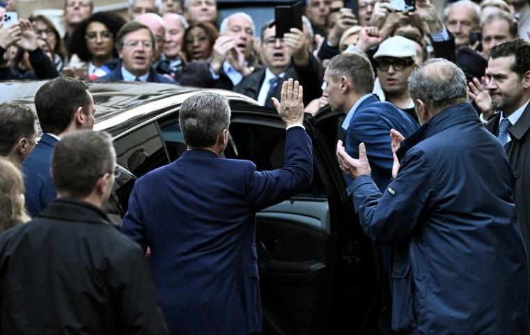 宣称自己无罪的萨科齐,被收监关押 与妻子手握手走出住所,在数十名支持者和家人的