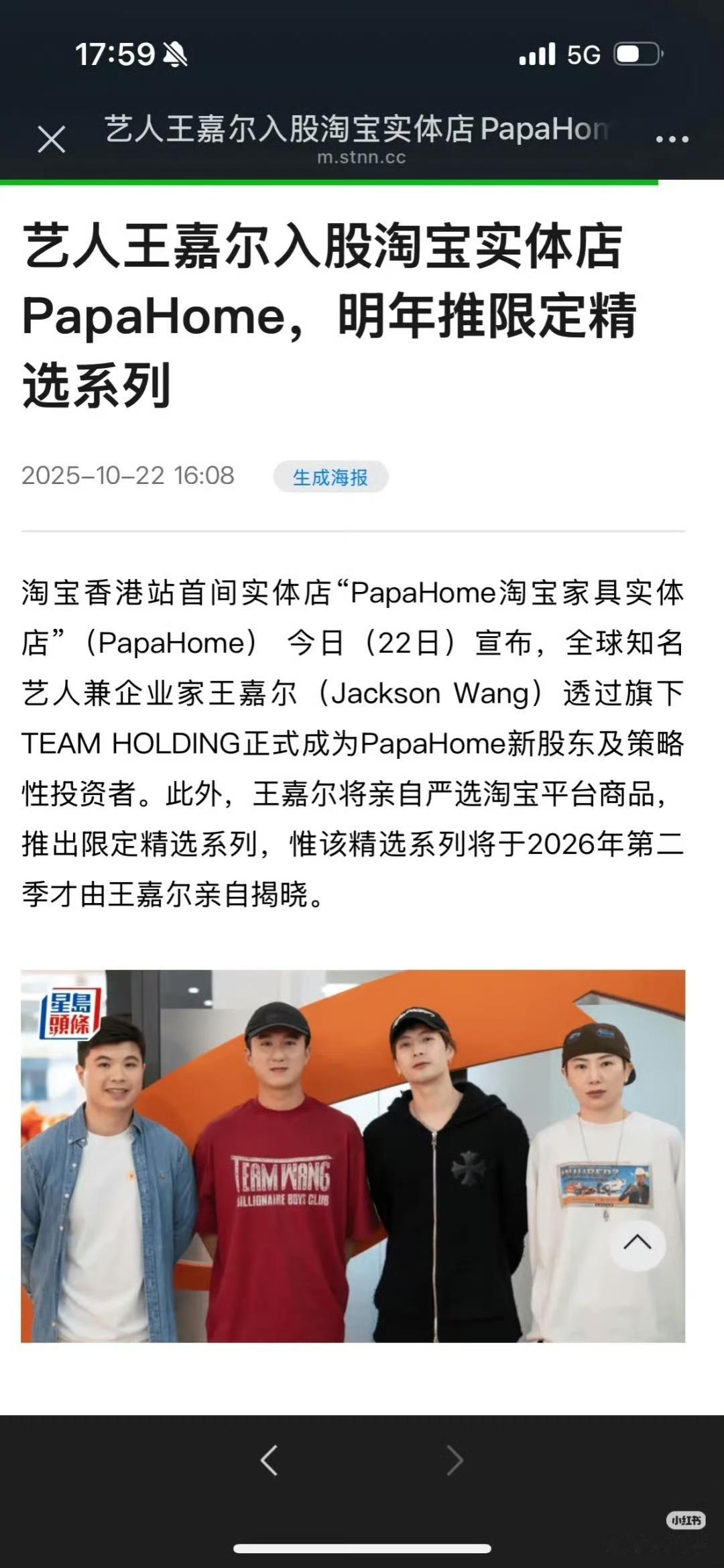 王嘉尔入股淘宝 今天起再提到王嘉尔又多一个淘宝股东的身份了!“王老板”的含金量还在不断上升,商业版图持续扩张。这看似简单的合作背后更是阿里巴巴对王嘉尔的有力肯定!