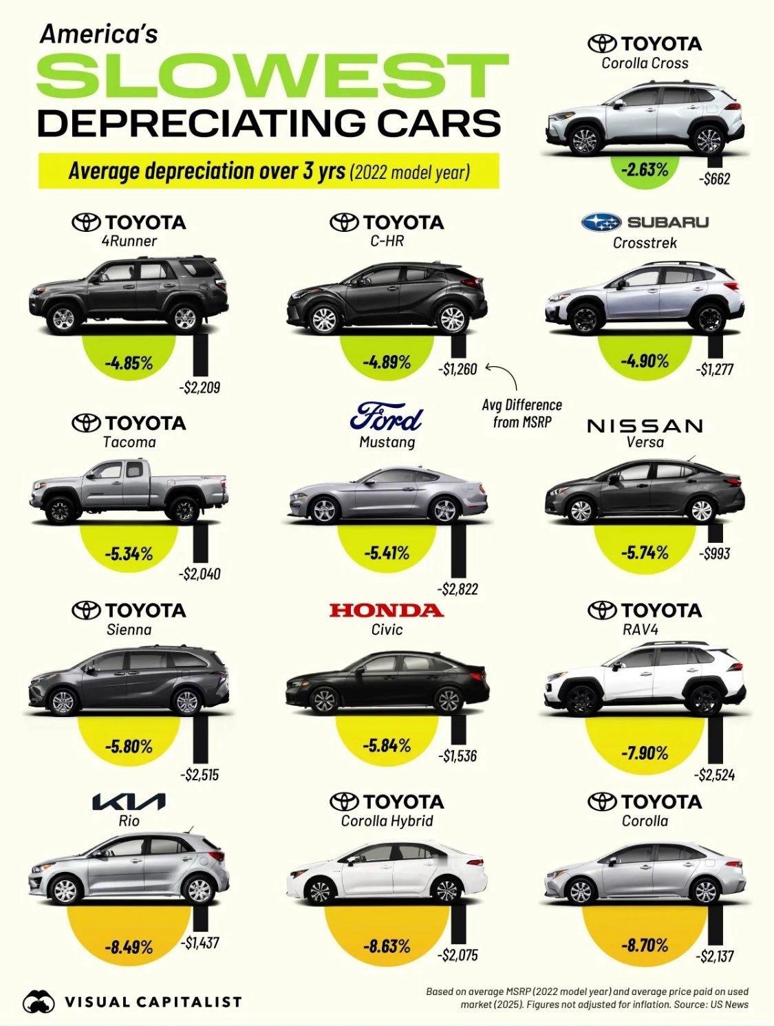 看到这个榜单,贬值最少的二手车:前十名中,第一、第二、第三、第五、第九和第十名均