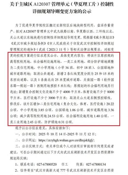 投资30亿❗高校升级🔆 武汉华夏理工学院关山校区(24.53公顷)将转型,其中20.22公顷建住宅,3.85公顷建中小学及文体设施。学校投资30亿元在梧桐湖建设"公园式数智化校园",聚焦人工智能等专业产学研融合。2025年9月新校区启用,采用"新生新校、老生老校"过渡模式,智能制造专业学生用自研赛车搬运行李,体现教学特色。此次搬迁既是高校升级,也助推武汉新城建设。 华夏理工学院 梧桐湖新区 高校升级 中小学 武汉新城 武汉新城区