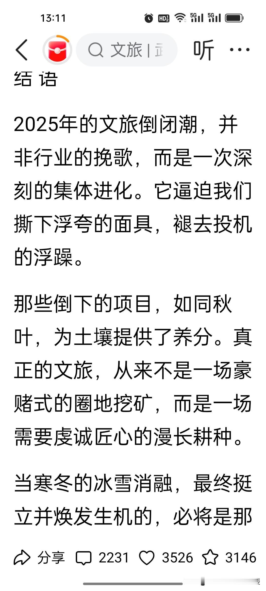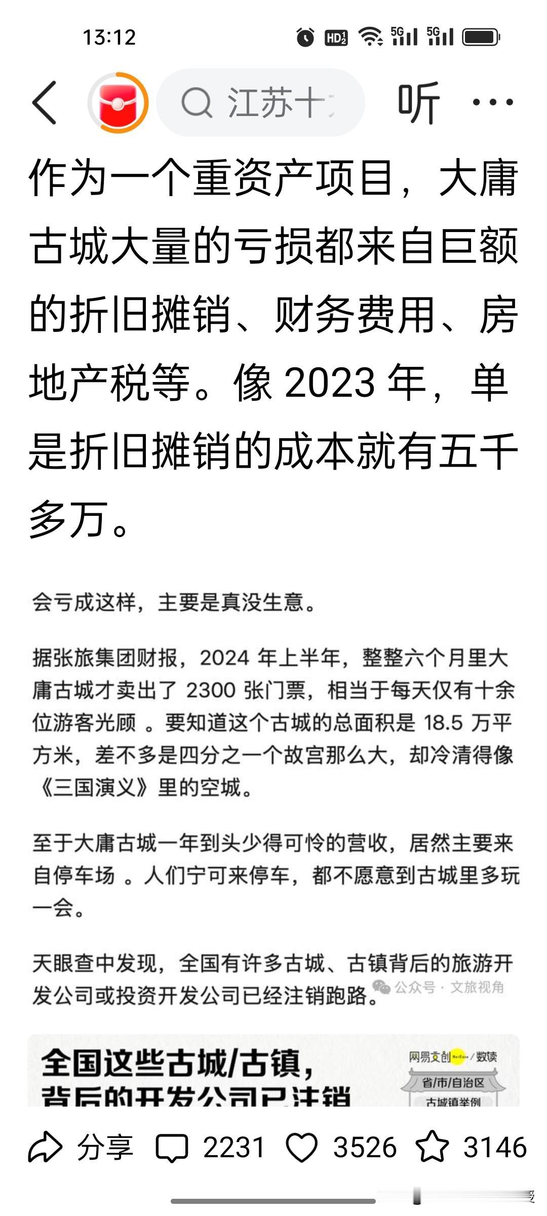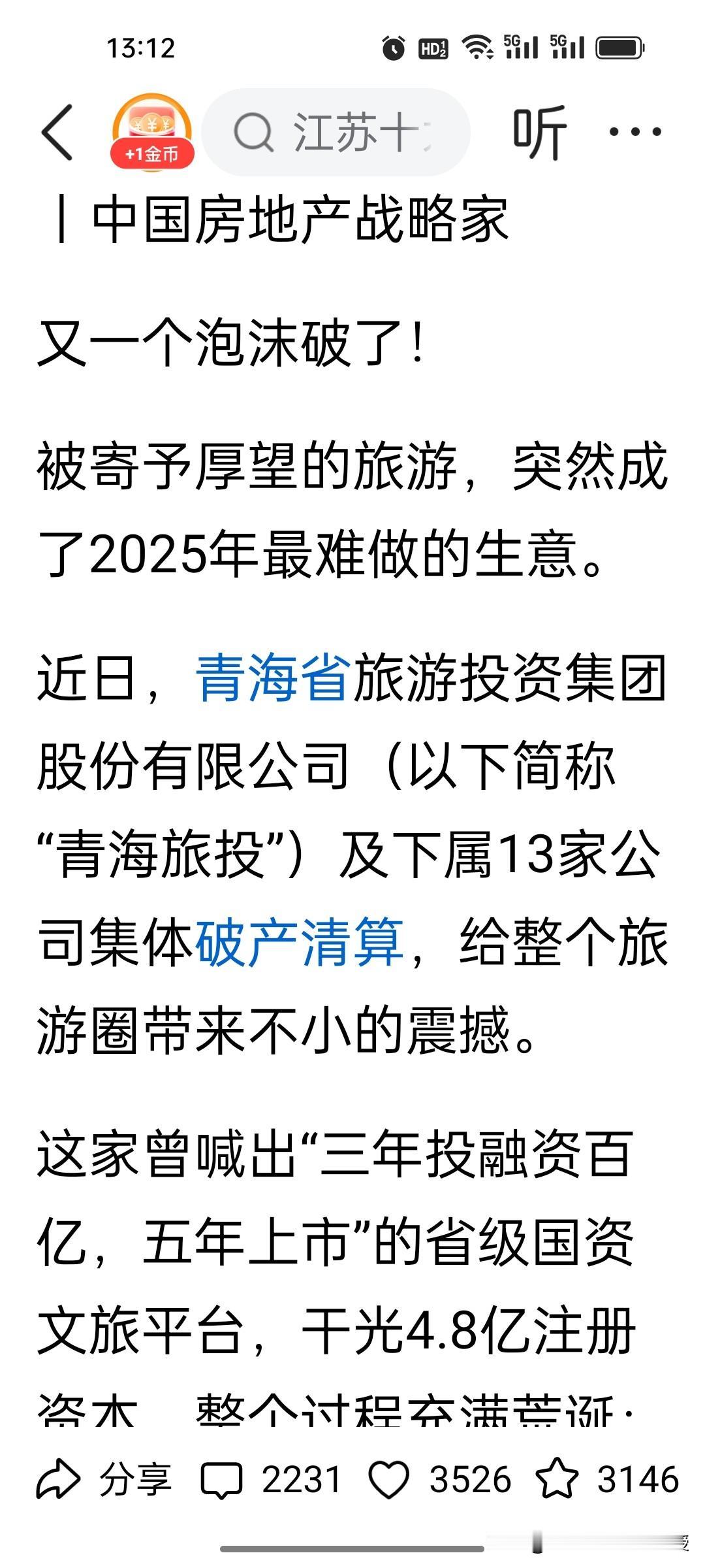今年旅游业已经强劲复苏,为什么还有大批文旅项目面临倒闭呢? 根据《新浪财经》消息,旅游行业的倒闭潮真的是猝不及防!青海省旅游投资集团股份有限公司及下属13家公司集体破产清算,另外热门旅游目的地桂林,张家界,云南等文旅公司也都经营困难,游客络绎不绝的热门景点为什么会入不敷出?最关键的原因在于项目多是“文旅壳、地产心”,同质化严重且重投轻营,资金链非常容易断。 想到2015年贵州六盘水市花了9.37亿建了亚洲第一索道,利用率很低,这是是当时六盘水市委书记李再勇主导的,他已经落马了,他在忏悔时说没想过负债,反正自己做几年市委书记就要换的。就这个项目造成了极大的财政负担。 地方文旅需多花心思,跳出造房子的旧思维,要深挖本土文化做差异化战略,用轻资产模式搞运营,少盖无用的房子以及面子工程的设施,多造体验场景,靠独特体验才能挽回口碑且留住人。