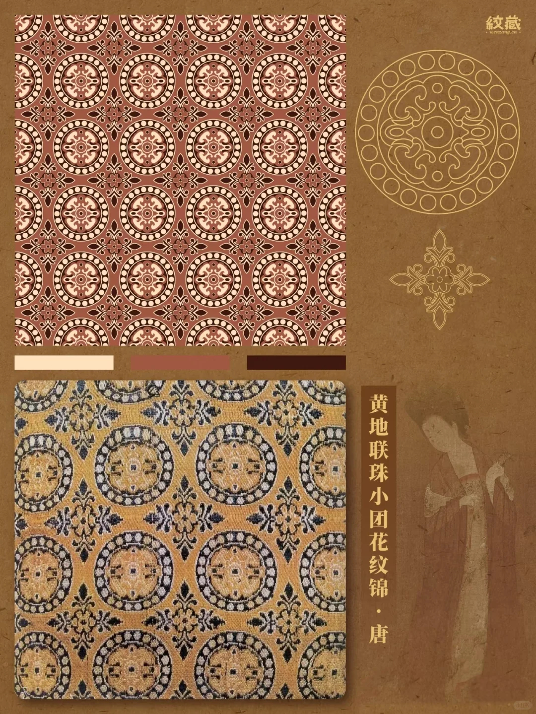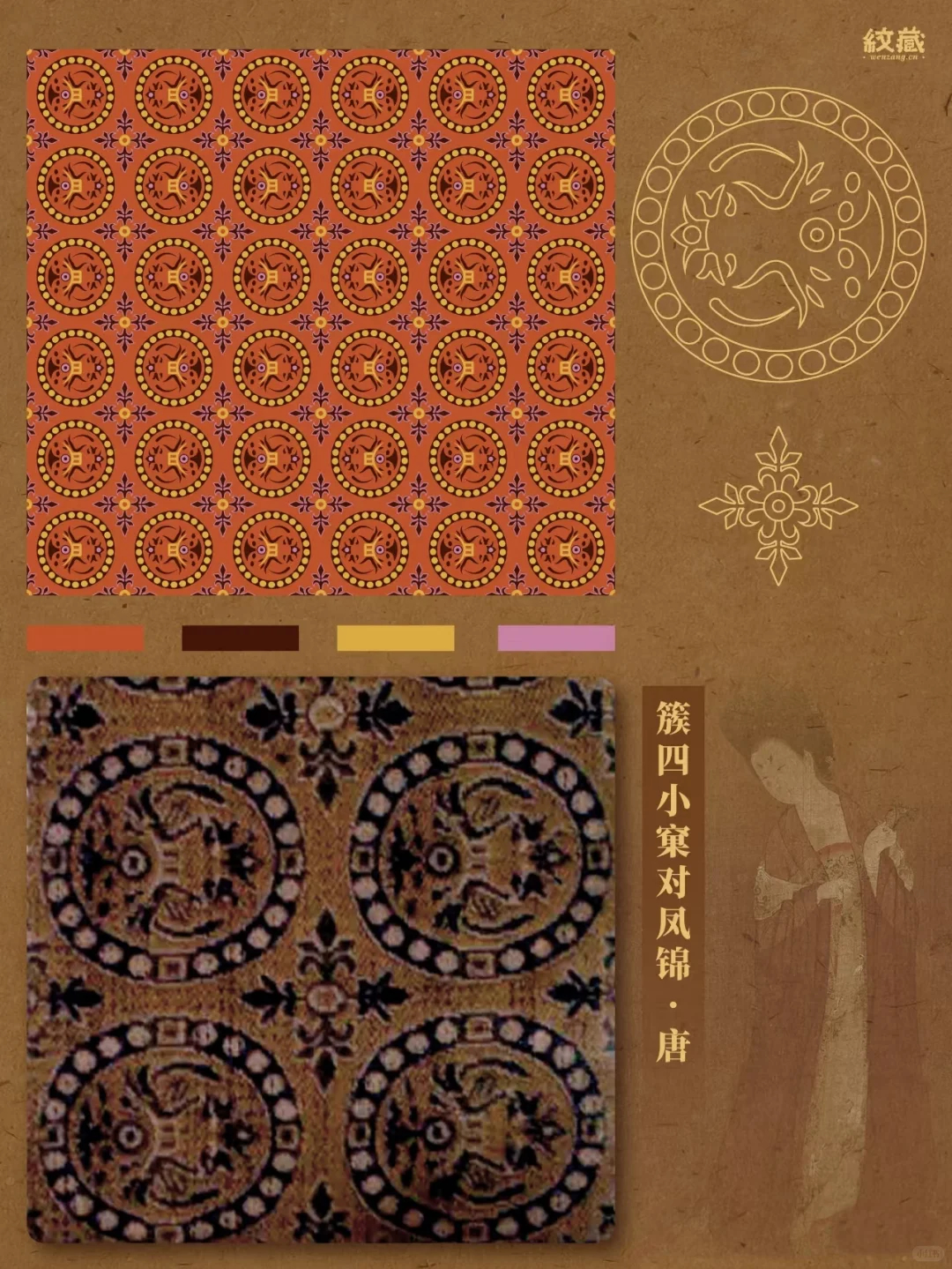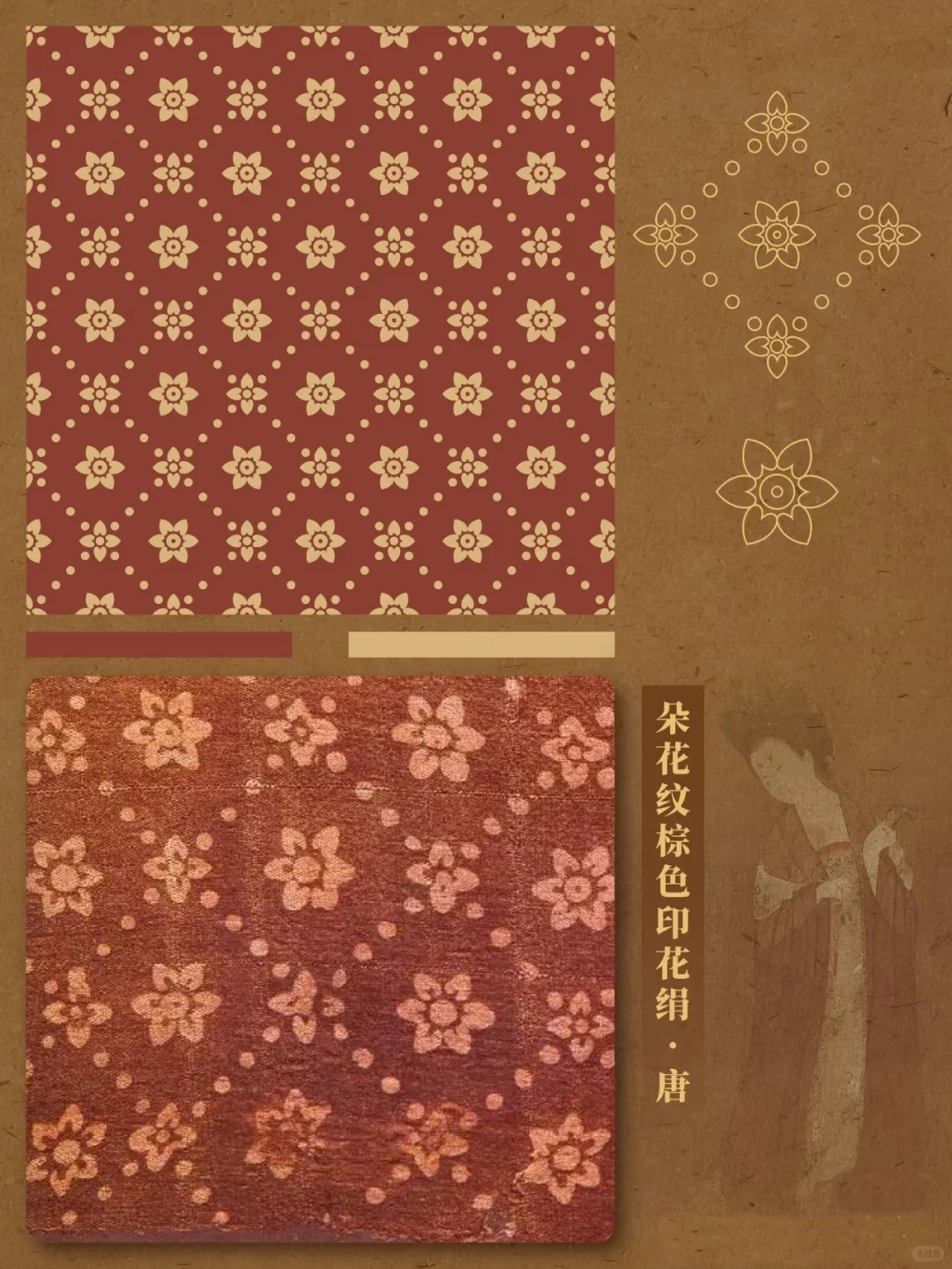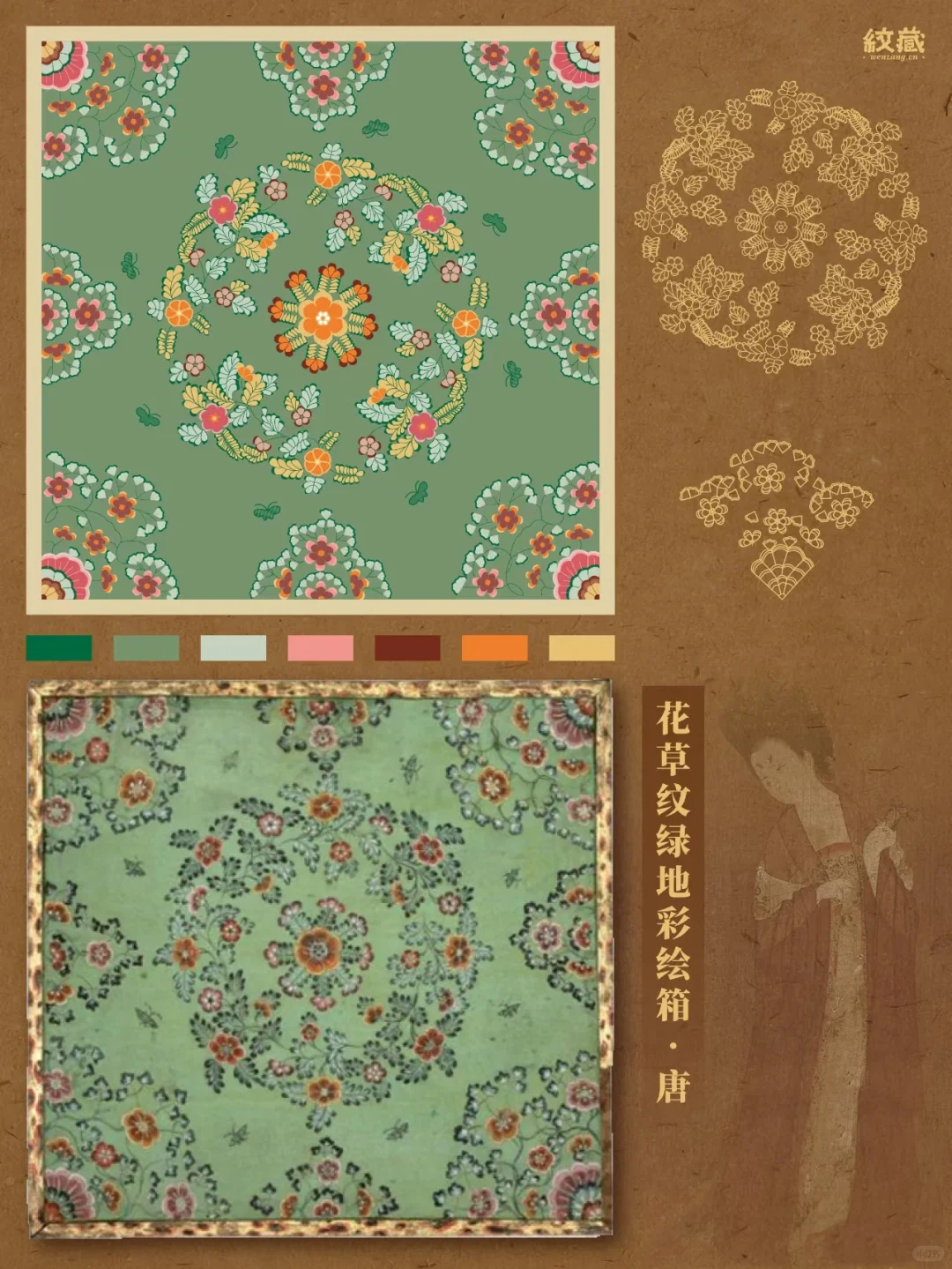 唐代各个民族相互融合,中外文化相互交流,使纹样艺术体现的更加丰富、富丽、华贵。唐代纹样的发展与社会、文化的变迁密切相关。初唐时期社会稳定,艺术风格受前代影响;而盛唐时期国力强盛,艺术呈现出繁荣富丽;中唐时期文化繁荣,纹样更趋向于写实;晚唐时期社会动荡,纹样呈现出更加抒情和高雅的特点。(cr.纹藏)