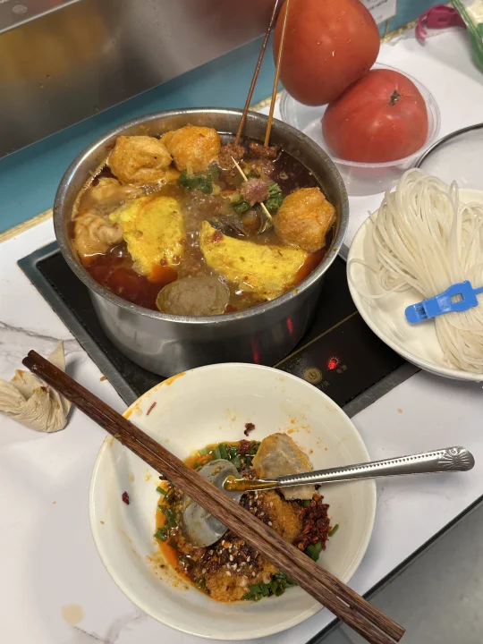 开在居民楼里面的。同学推荐的 吃什么拿什么、 我们两个人才吃了40➕ 坐那吃了2小时外卖单没停过 还是用的妈妈那辈的时髦彩光招牌 非常不起眼, 但真的完全吸引住我两 会频频回头!!!