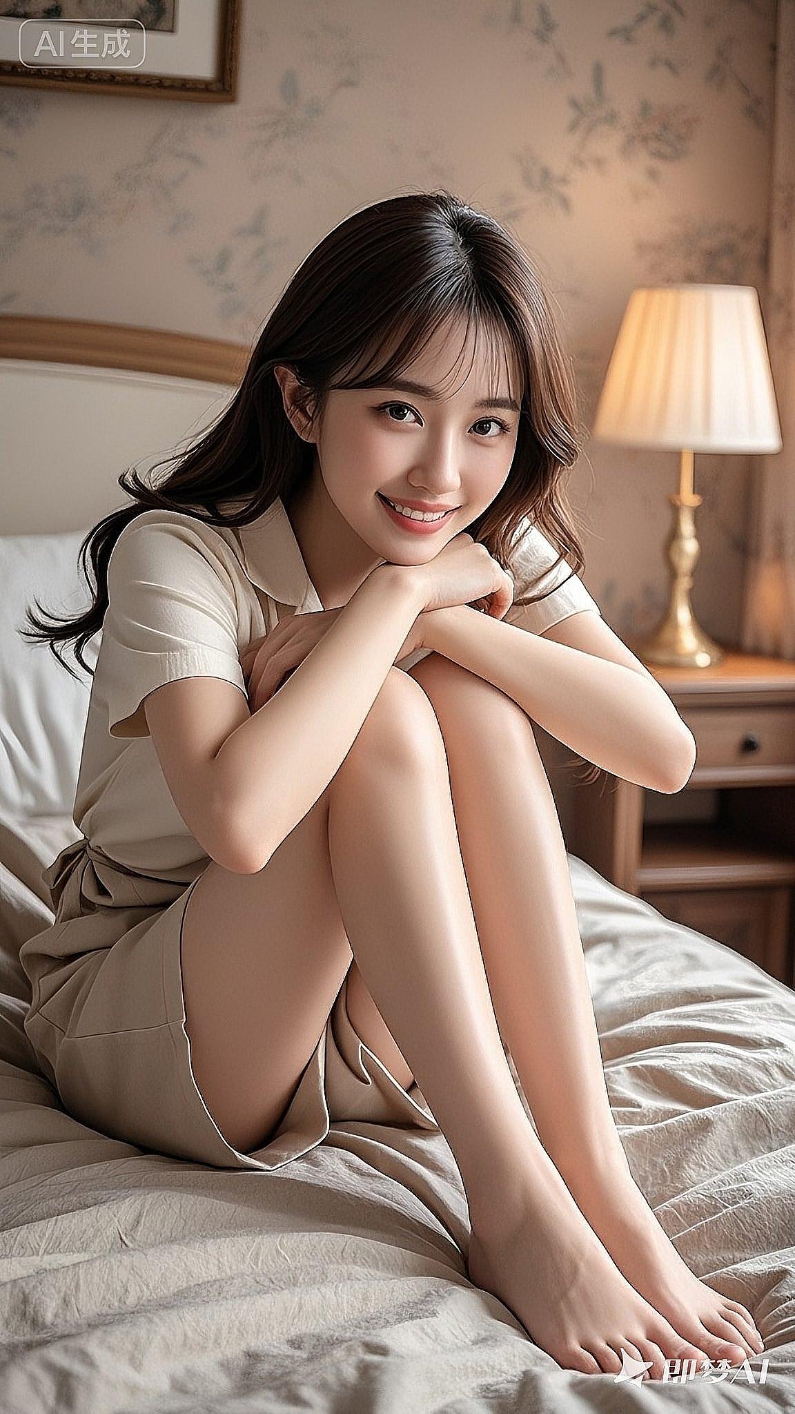 暖灯漫过床沿,洒在温馨柔和的家中,她蜷在浅米色的松弛氛围里,发梢垂着温柔的弧度。当笑意落进眼底时,连空气都裹上了清甜的温度,宛如偷得的半刻闲暇,刚好装下这帧软和的时光。