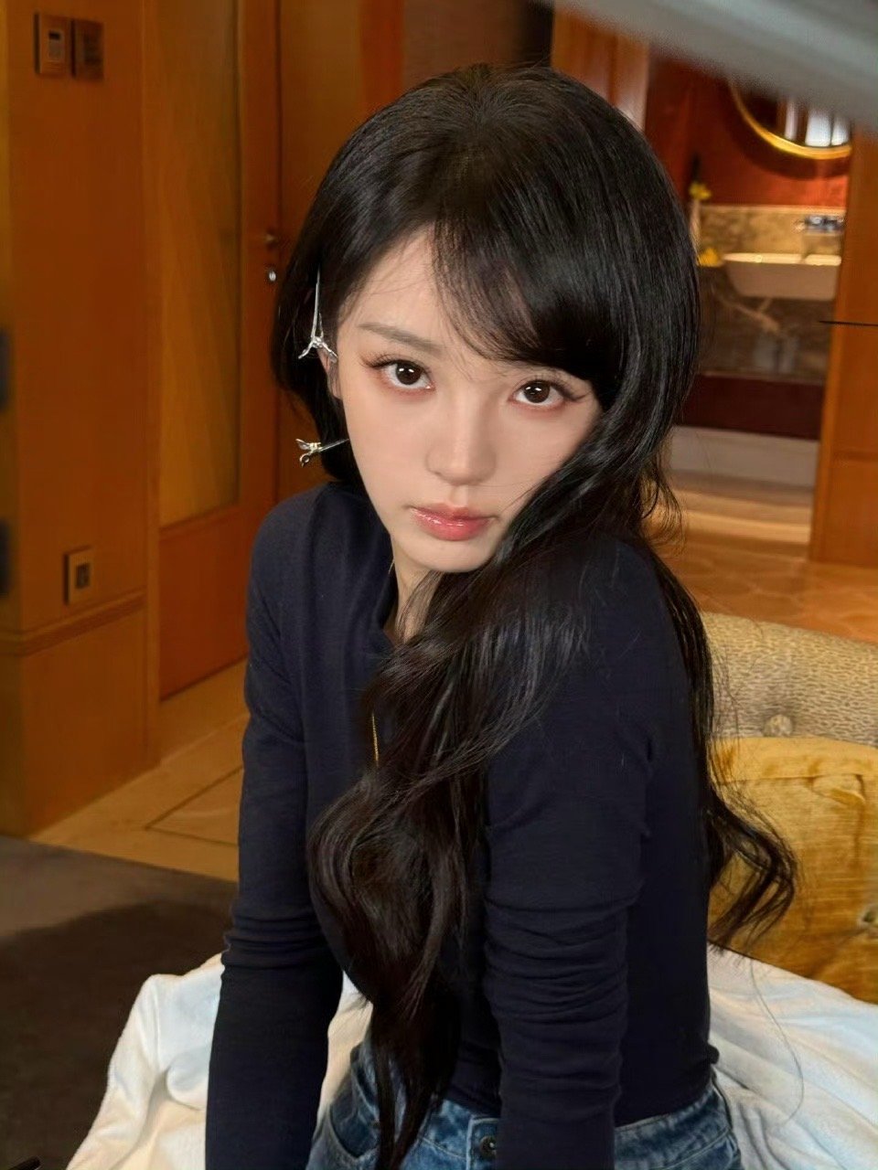 田曦薇卷发黑大衣 卷发+黑大衣自带高级感,甜妹变身气场女王~
