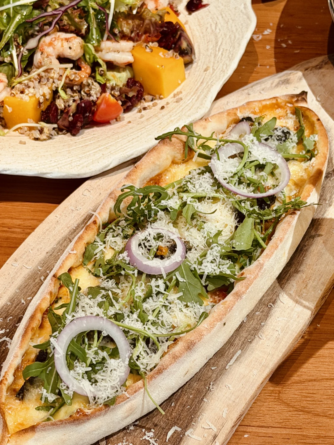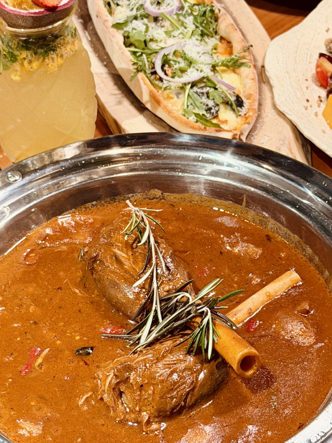 推门就被窑炉披萨的香气香迷糊~整个店氛围感非常棒,灯光也打得很巧秒,食材又鲜又靓,出品很棒~聚会超有面儿~ ✨必点推荐: ✅ 🥩阿根廷青酱烤羔羊排:肥瘦刚好,肉香带汁,一口大满足! ✅ 棕黄油X.O酱煎老虎虾:火候到位,调味绝了,我这个挑剔的海边人都夸! ✅ 🍕墨鱼肠船型披萨:一上桌就秒光,香脆料足,抢着吃才香! 吃一次就爱上,真心安利给各位吃货,冲就对了!