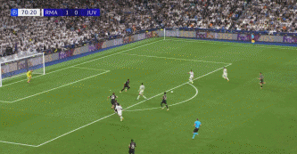 第57分钟,维尼修斯左侧连续虚晃后起脚打门击中立柱,贝林厄姆补射得手!皇马主场1比0领先尤文。