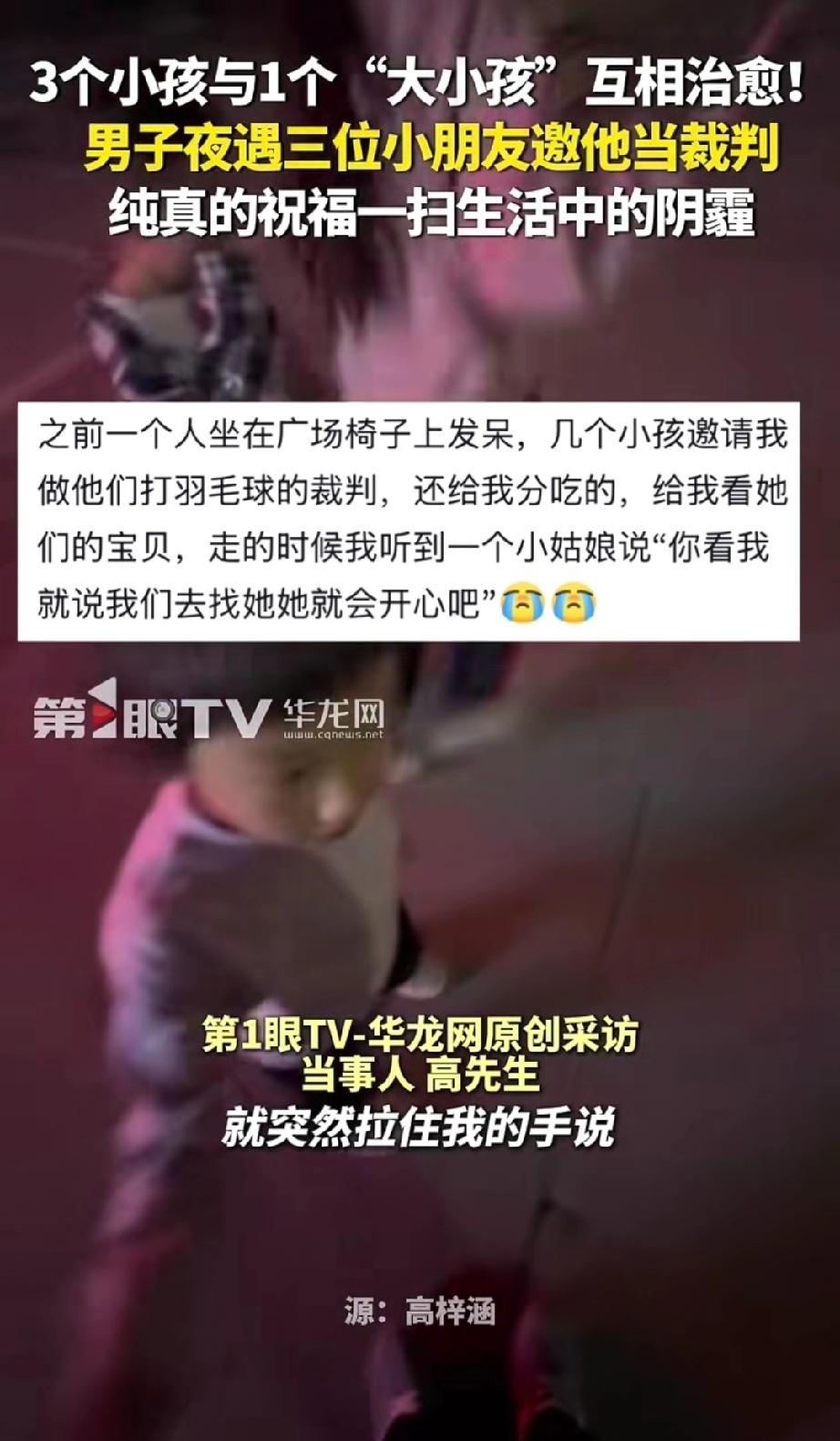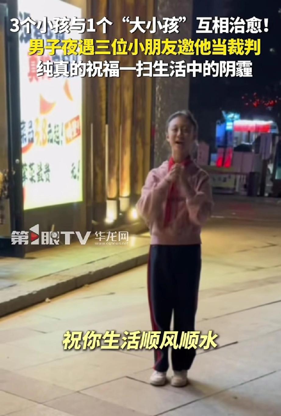 小伙心情不好,晚上坐在广场上吹风。一个五六岁的小女孩跑过来,拉住小伙的手说:“哥哥,我们打羽毛球,缺个裁判,你能帮帮我们吗?” 小伙点头应允,起身随小女孩走去。 看到小伙答应了,旁边一个小男高兴的,孩蹦蹦跳跳的说:“我们邀请了好多人,只有你答应了。” 小伙听后,惊讶的回道:“真的吗?”心情顿时好了一些。 比赛结束,为表感谢,男孩给小伙表演了一套拳术,大一些的女孩则跳起了新学的舞蹈。 做过裁判,看着认真表演的孩子们,小伙的阴霾心情烟消云散。 告别时,女孩抱着拳对小伙说:“哥哥,祝你生活一帆风顺,工作顺顺当当。” 收到祝福的小伙感动不已,眼眶泛红,赶忙回应:“好,谢谢你,也祝你们学业顺利。” 小伙开心地往家走去,孩子们的邀请与喜爱,吹散了他心头的笼罩的迷雾。 孩子的世界是那么的简单纯粹,当简单纯粹与善良相遇,便是最美的风景。 有时候,不经意的举手之劳,往往藏着照亮他人的微光,终会收获意料之外的温暖回响。 来源:新华社