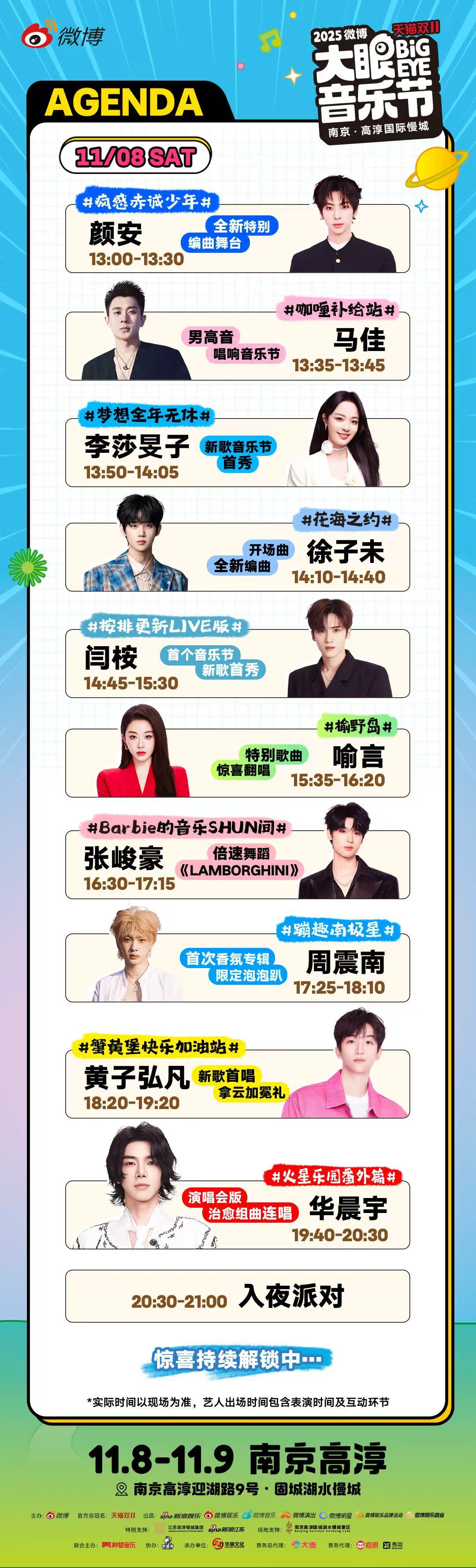 华晨宇重现火星版治愈组曲 大眼音乐节这波安排太戳心!花花首次把火星演唱会治愈名场面搬到南京,11.8-11.9高淳现场用温柔声线织就情绪防护网,这波听觉SPA必须提前占座,错过真的会哭!