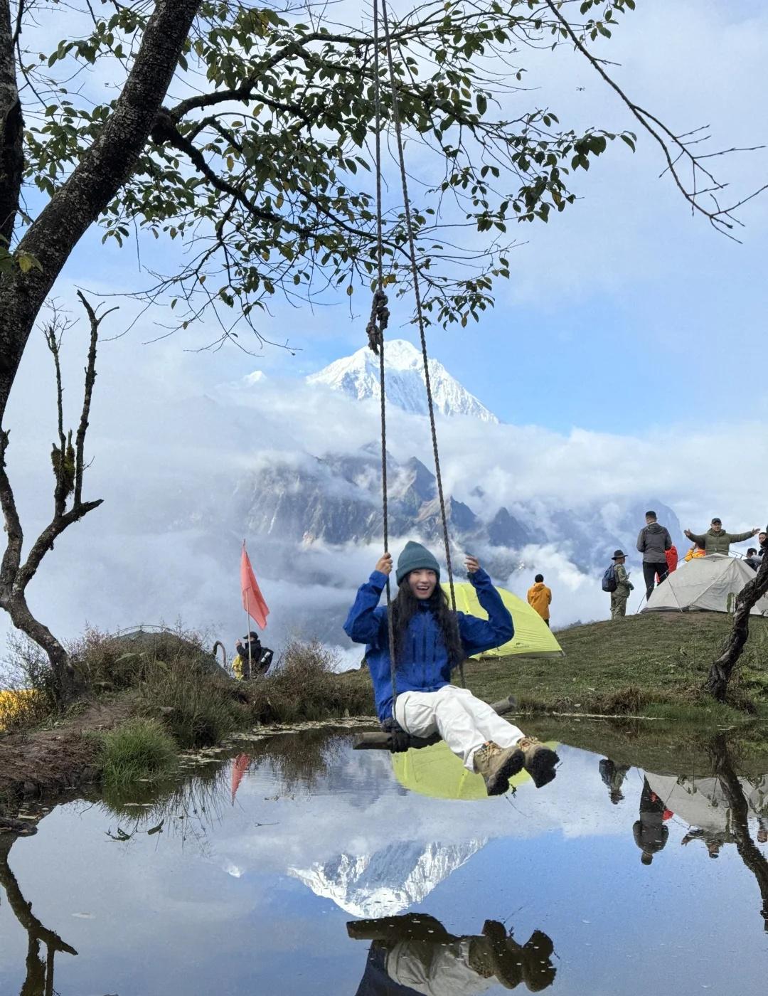 那一天,我看到了贡嘎神山,还在雪山下荡秋千 一直都很想去龙华山,今年终于安排上了,在这里还可以看到贡嘎神山!雪山秋千我也是荡上了,简单又好看,可以说是性价比拉满的一条高原徒步路线。 关于路线: 📍导航:定位“龙华山徒步起点停车场”,常规是导航坭马驼,还需要坐转运车才到徒步起点(或者步行1.5km),这段路挺好开的,都是公路,建议直接开上去 ⏳路线: 徒步往返约6km,累计爬升830m,路程短但一路都是爬升,约3h到水潭边扎营,营地无水源 💵费用:垃圾清洁费+扎营费¥30/人(热水另加20),不扎营进去荡秋千也是¥30/人,山里有通铺可住宿 💡装备建议: 👔: 在高海拔徒步硬壳冲锋衣不可或缺的,我这次穿的是凯乐石MONT X-PRO勒多曼因蓝硬壳冲锋衣,配色源于贡嘎雪山的勒多曼因冰川,温柔而又神秘静谧,穿着它跟贡嘎神山拍张合照,适配度拉满!GORE-TEX PRO科技面料,可持久防风防雨,在高原遇到极端天气也可以轻松应对,40D透汽面料加腋下超长防水拉链可快速通风散热,穿着体感舒适。 👖:需要穿一定厚度的速干裤或者冲锋裤 🥾:需要穿专业的防水抓地力强的登山鞋,一路基本都是没什么着力点的泥坡,很滑容易摔跤,我这次穿的凯乐石MT5一路走得很安心,稳稳的 🎒:背负系统良好的徒步背包:我这次背的凯乐石巅峰,背负体感舒适。 上山前看着天气不错,结果上了山后一直是大雾,小水潭在阴天条件下真的很普,也看不到贡嘎神山,所以一定要挑好天气去!我们这次虽然没看到日照金山,但是看到了云雾缭绕的仙境景色,蹲了很久也终见贡嘎,还在雪山下荡秋千,不虚此行! KAILAS凯乐石 硬壳冲锋衣 十一户外漫游 攻略 冲锋衣我的徒步日记 户外穿搭徒步丈量世界