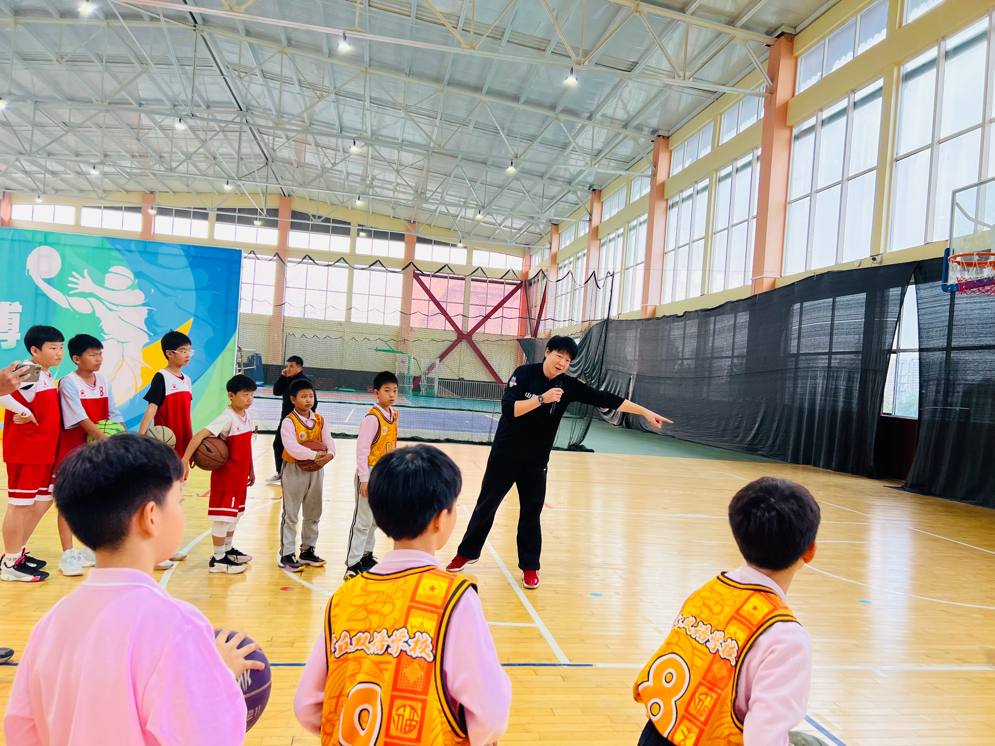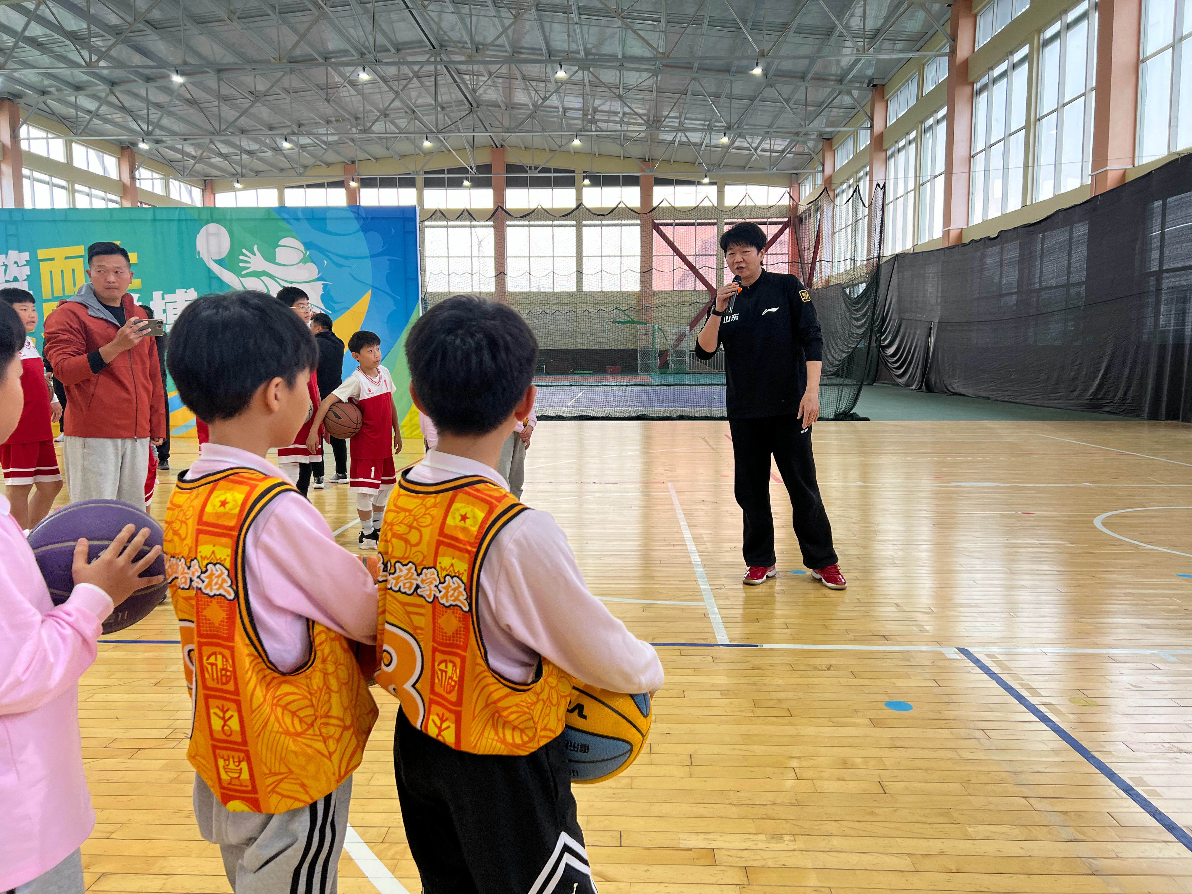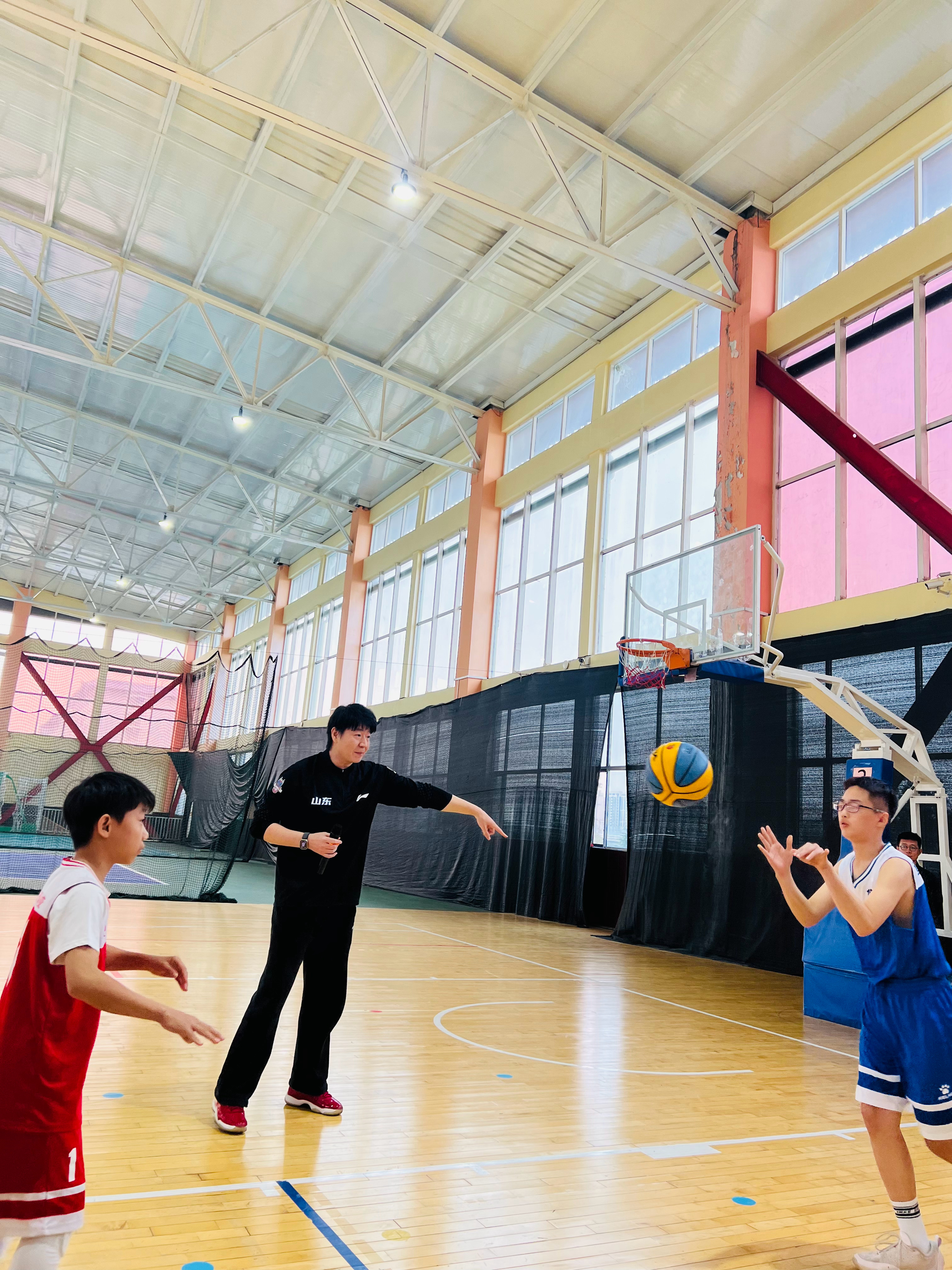 山东高速篮球俱乐部总教练纪民尚,主教练邱彪一行今天下午来到章丘,和学校里喜欢篮球