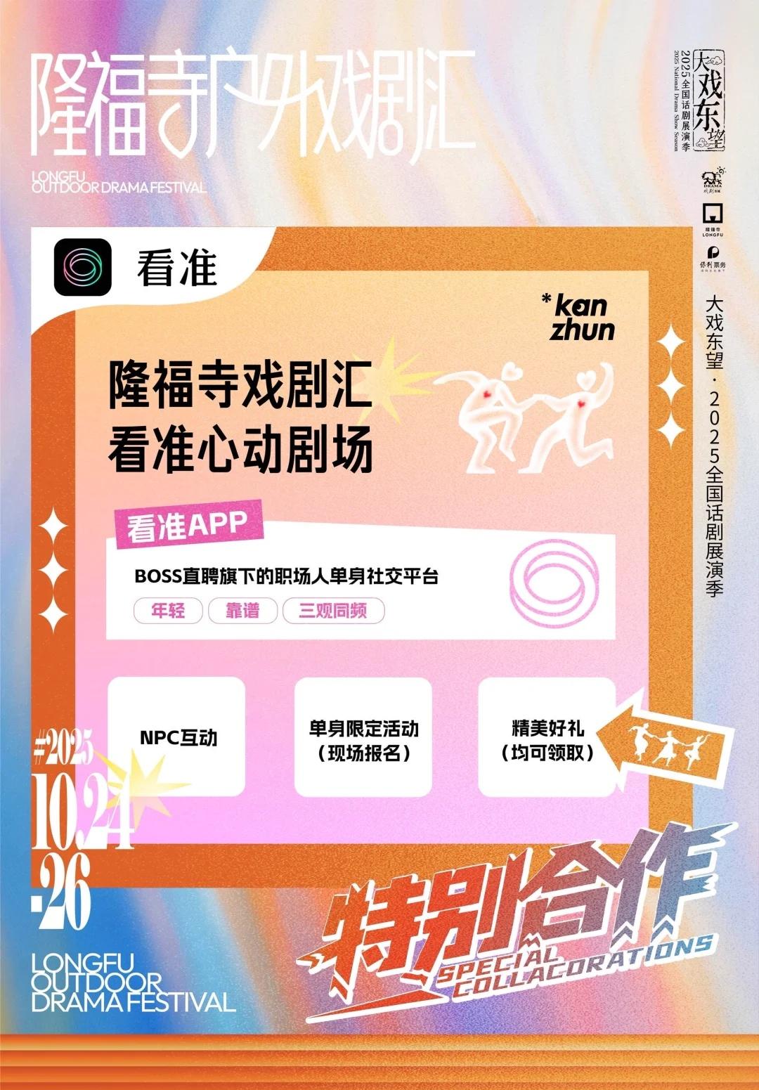 恋综线下版来了|隆福寺×看准心动剧场 北京的初秋,隆福寺发“对象”啦! 看剧、互动、抽礼物、遇见新朋友~ 这场【隆福寺户外戏剧汇 × 看准APP】的联动活动真的太有趣啦👇 @看准 📍时间:10.24–10.26 🎁 现场打卡看准展区,解锁: ✅ NPC互动任务 ✅ 单身限定活动报名 ✅ 精美好礼领取 🎭 戏剧是舞台上的故事, 而你的故事,就在这里开始。 2025隆福寺户外戏剧汇 看准APP 脱单社交 心动剧场 秋日活动众在隆福享生活