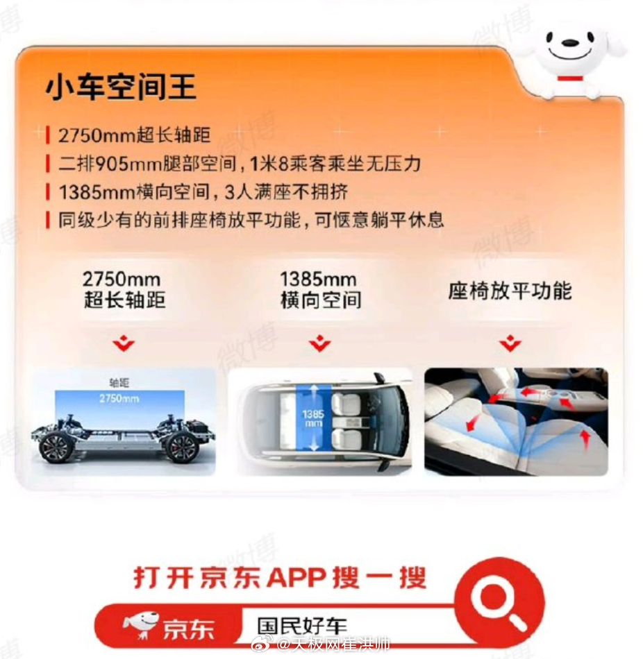 2750mm超长轴距赋予其A级平台B级空间体验,二排905mm腿部空间让1米8乘客乘坐无压力,1385mm横向空间确保三人满座不拥挤;