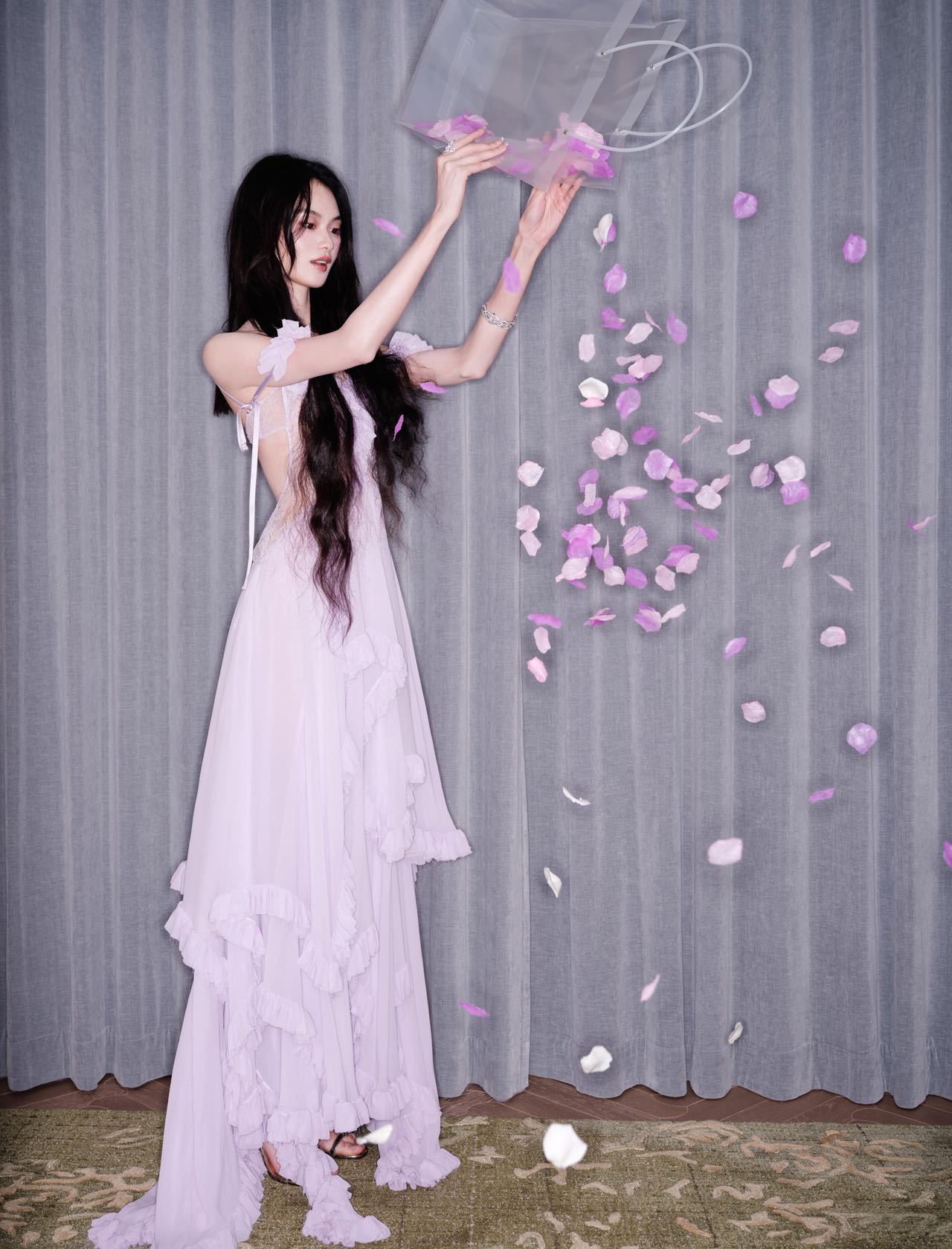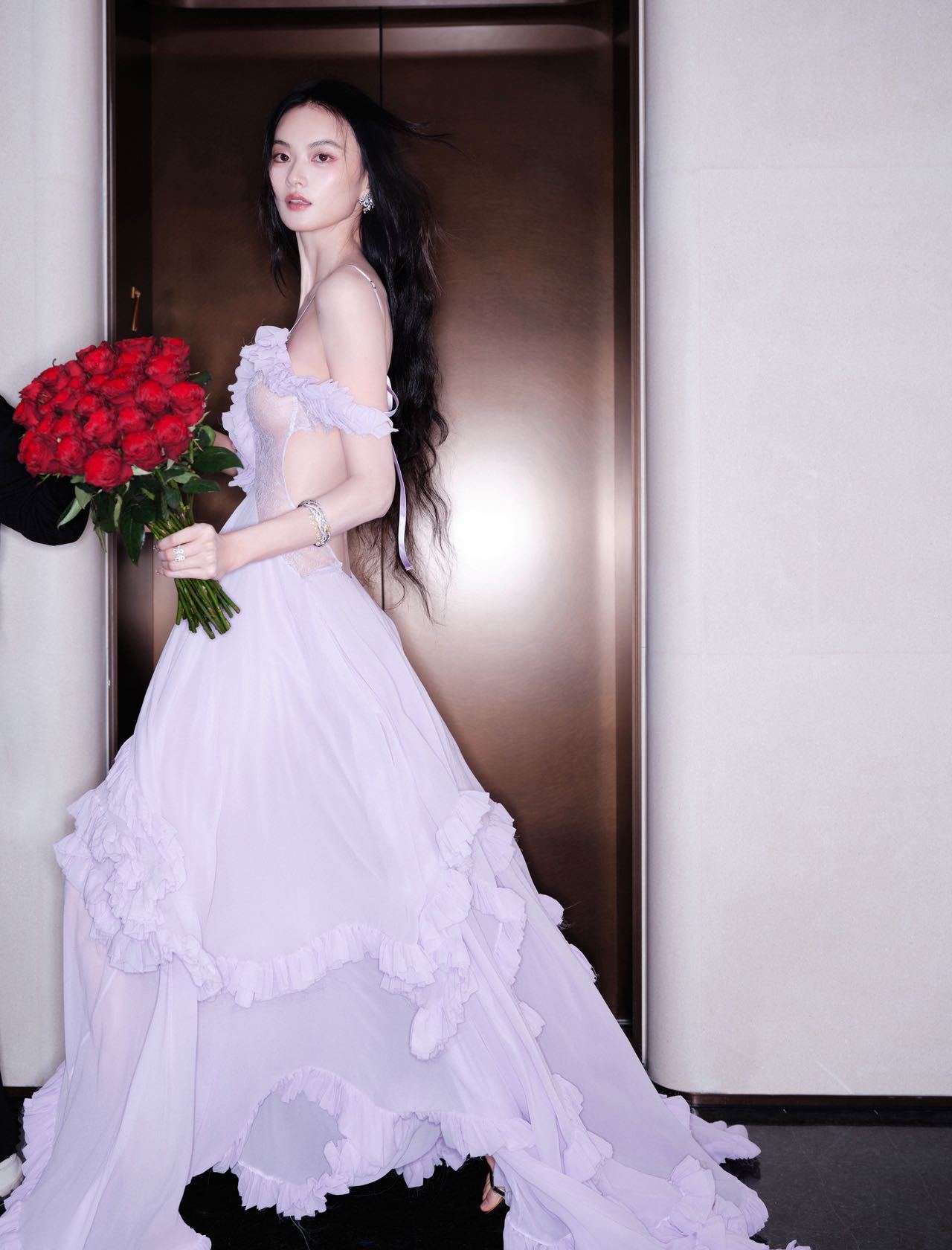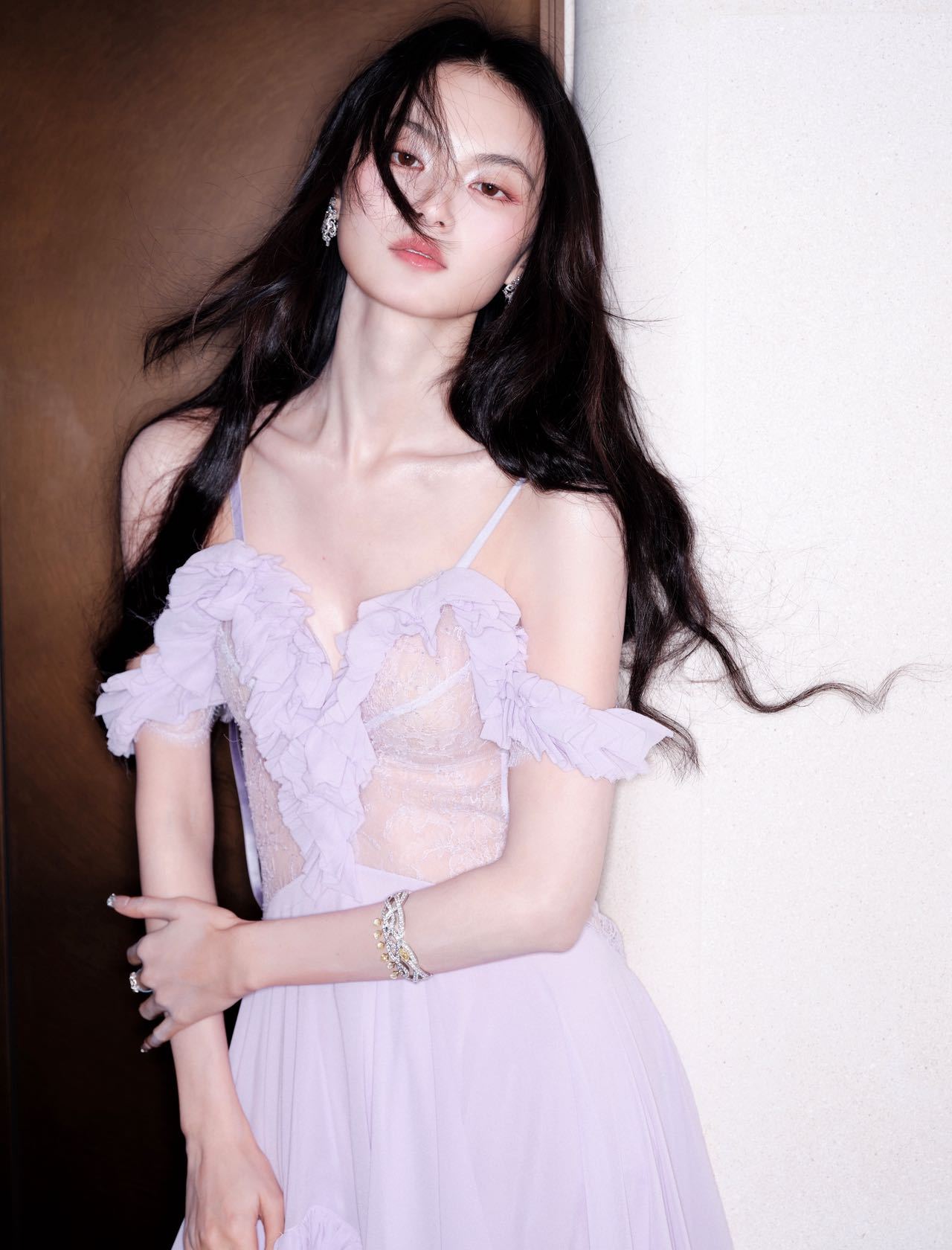 谁能拒绝穿紫罗兰纱裙的贺聪?温柔的紫与轻盈的纱完美融合,衬得她气质空灵又仙气贺聪