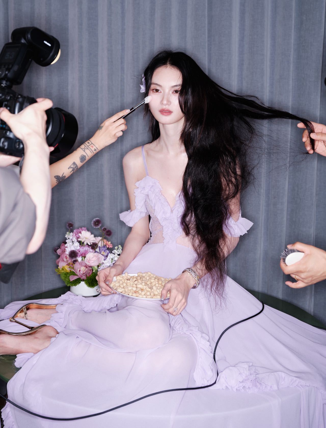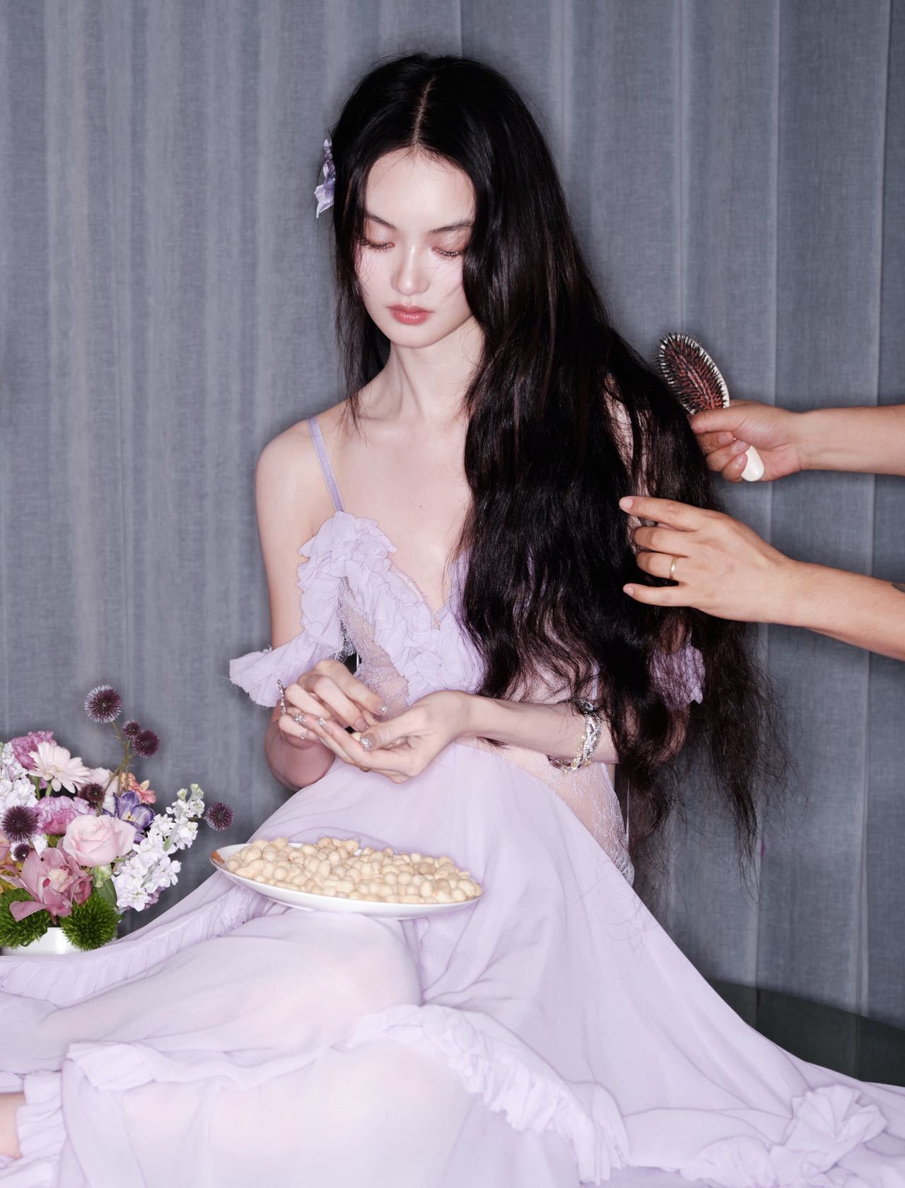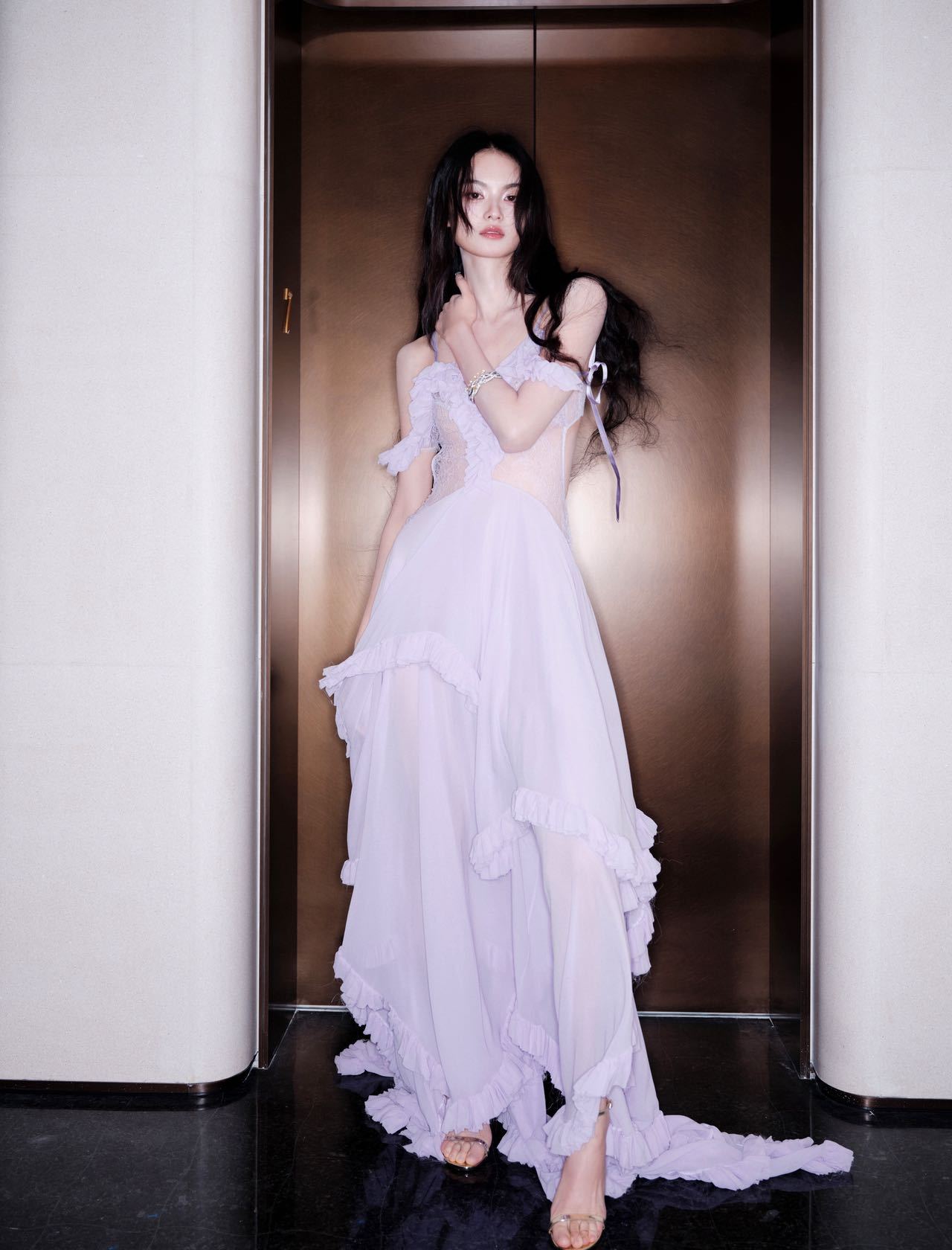 谁能拒绝穿紫罗兰纱裙的贺聪?温柔的紫与轻盈的纱完美融合,衬得她气质空灵又仙气贺聪