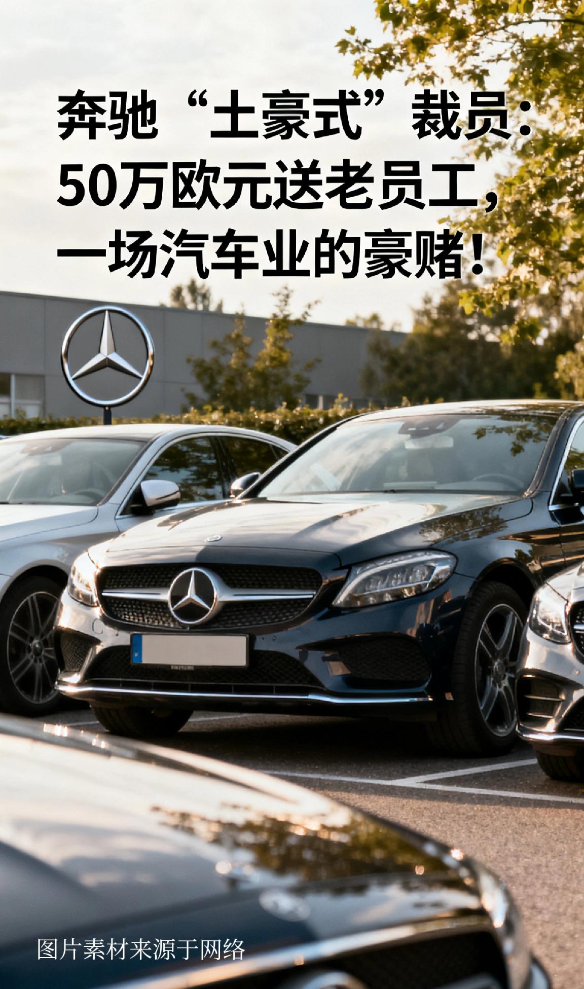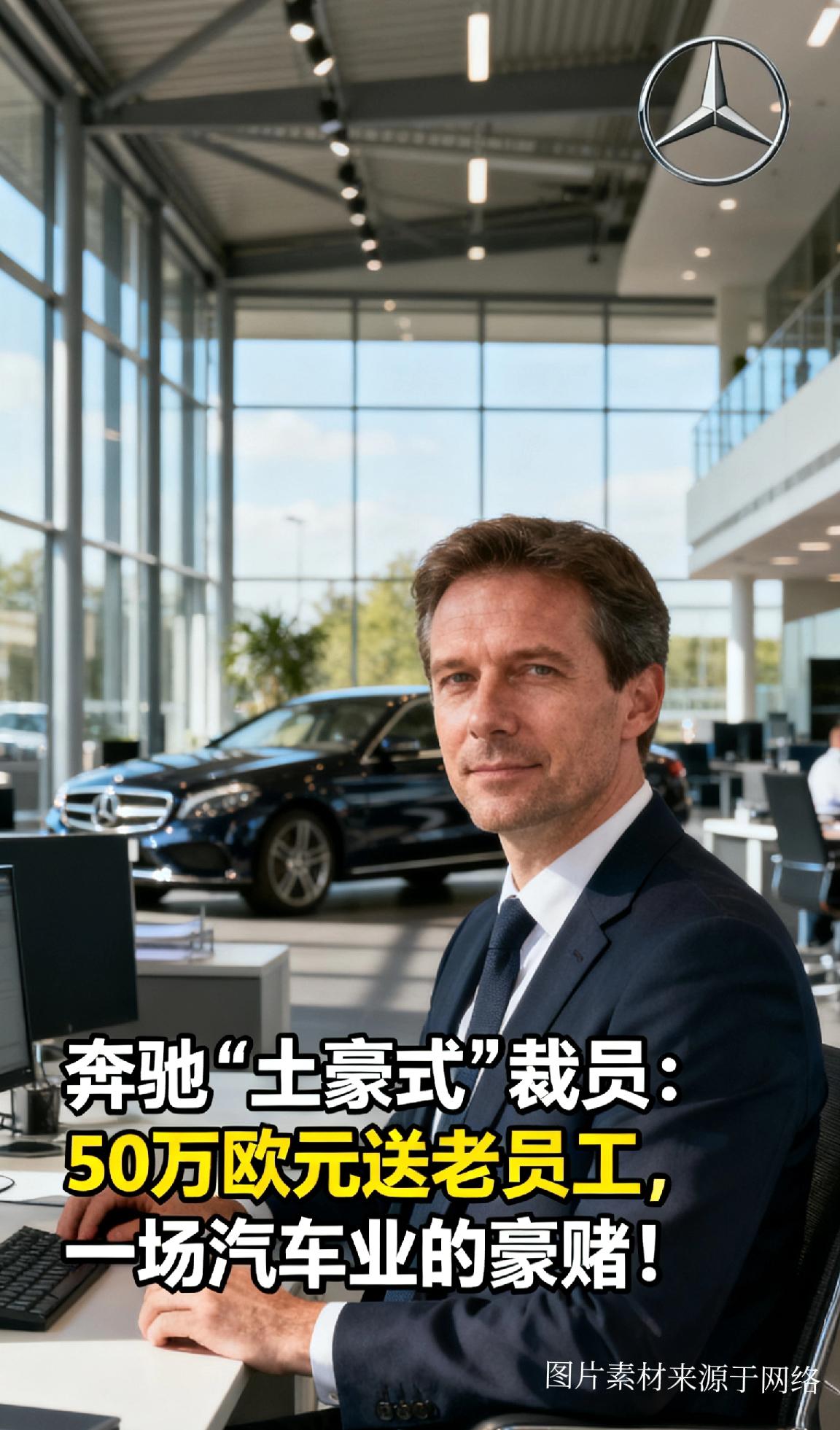 奔驰“土豪式”裁员:50万欧元送老员工,一场汽车业的豪赌!🔥 奔驰最近搞了个大新闻——它正用“钞能力”裁员,最高掏出50万欧元(约413万人民币)补偿金,鼓励员工自愿离职。目前已有约4000人拿着钱走人,而这场“温柔裁员”的终极目标是让3万人主动离开。网友戏称:“这不是裁员,是毕业即退休!” 一、裁员背后:奔驰的“断臂求生” 奔驰为啥这么大方?答案藏在它的业绩报表里: · 利润腰斩:2025年上半年净利润仅27亿欧元,同比暴跌55.8%,相当于每天少赚近3200万元。 · 销量雪崩:全球销量连续下滑,第三季度再跌12%;更扎心的是,在中国市场——奔驰最大的“饭碗”——销量直接暴跌14%,纯电车销量还跟着凑热闹降了14%。 电动化掉队成了致命伤。奔驰的EQ系列电动车被网友调侃“降价都卖不动”,自研软件MB.OS进度滞后,而中国新势力(如蔚来、小米)早已用智能座舱和超充技术抢走客户。为了活命,奔驰只能砍掉传统岗位,把省下的钱砸向电动研发。 二、“钞能力”裁员:一场精准的人才换血 奔驰的裁员计划堪称“土豪级操作”: · 梯度补偿:在德国,工龄30年的高管能拿50万欧元;在中国,销售部门推行“N+11”赔偿(例如工龄10年员工可获约50万元)。 · 精准开刀:主要针对工程师、行政等传统岗位,但Python技术员、电池研发人员反而被保留甚至扩招。 这哪是简单裁员?分明是“拆东墙补西墙”——把燃油车时代的员工成本,挪给电动化时代的智能人才。 三、行业启示:传统车企的集体焦虑 奔驰的困境是整个欧洲汽车业的缩影: · 大众计划到2030年裁员3.5万人,宝马也下调利润预期。 · 中国车企凭借电池技术和智能体验,正重新定义“豪华车”。以前消费者看发动机,现在比的是屏幕尺寸和续航。 网友调侃:“奔驰的补偿金像分手费——给得多是因为伤得深。”但背后真相更残酷:当汽车从“机械艺术品”变成“带轮子的手机”,传统巨头必须用短期阵痛换未来生机。 结语:裁员不是终点,而是生存博弈 奔驰的50万欧元补偿,看似是员工的“财务自由门票”,实则是百年车企的自救门票。它的命运也提醒所有人:时代抛弃你时,连发动机的轰鸣声都不会留下。