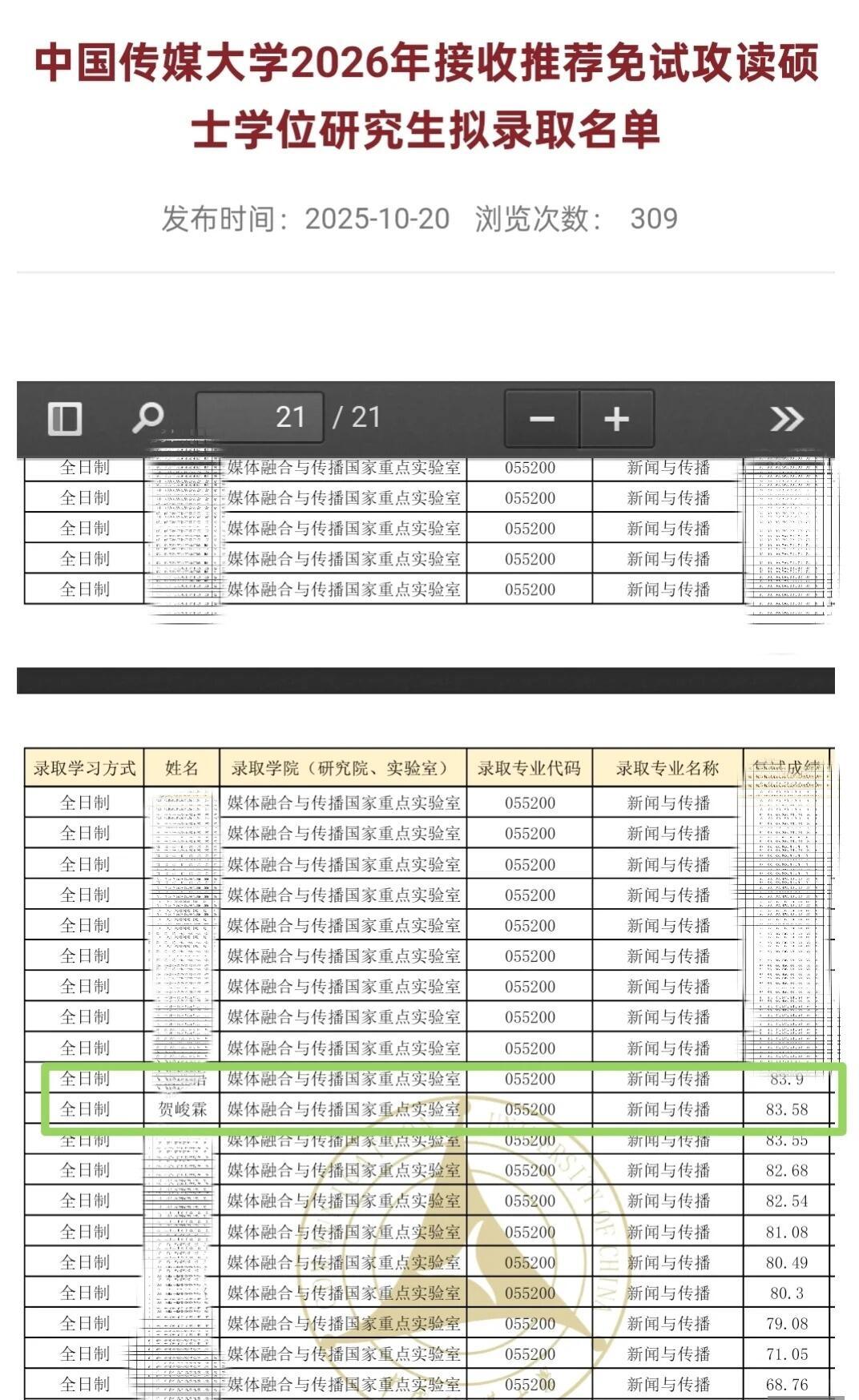 学校的主动背书,加上他实打实的绩点、复试成绩和实践经历(比如央视《中国电影报道》实习主播、北京国际电影节主持人等),就能堵上了所有质疑的嘴。