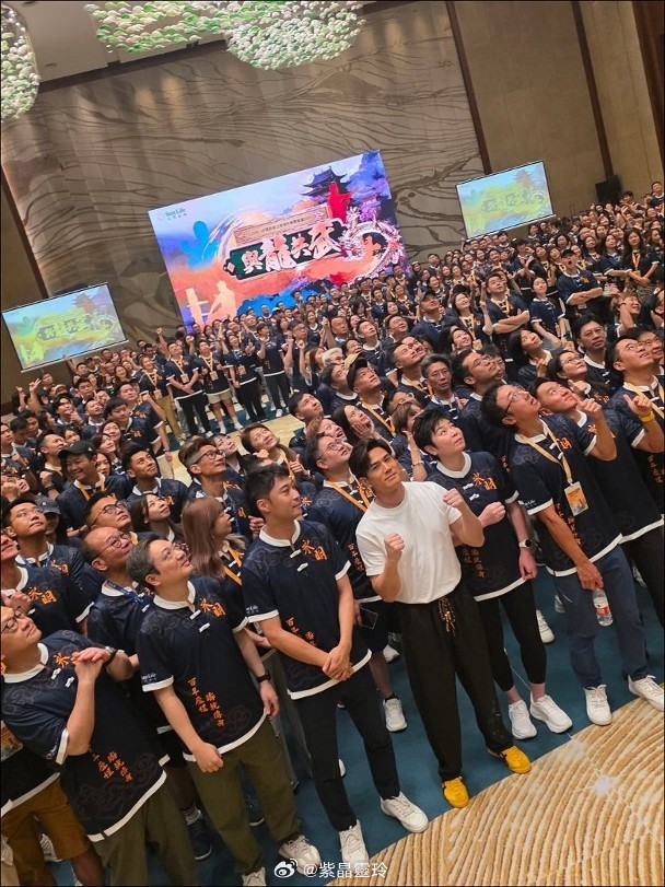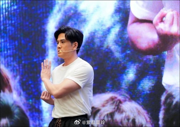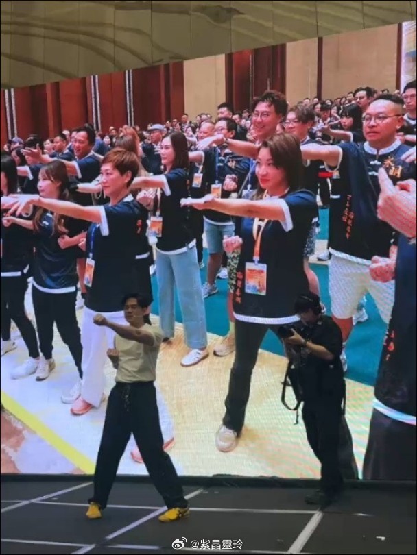 藝人伍允龍出道超過20年,憑《九龍城寨之圍城》飾演大反派「王九」聲名大噪,從小習武的他擅長各式各樣的武術,尤其是詠春拳,更曾擔任謝霆鋒的詠春師父,實力可見一斑。近日他在社交平台晒出外遊照,原來他兩星期前曾到訪重慶,不過主要目的並非旅遊放鬆,而是受邀到當地教導500個人打詠春功夫,為傳承詠春出一份力,正所謂「識學未必識教」,但相信對有徒弟的伍允龍而言不是難事。從相中可見,伍允龍站在逐個動作示範台上,而500名學生則密密麻麻壯觀地站在台下,眾人有板有眼地跟隨他擺出的姿勢,加上伍允龍的講解亦生動有趣,令學生玩得開開心心之餘,亦能藉此強身健體。