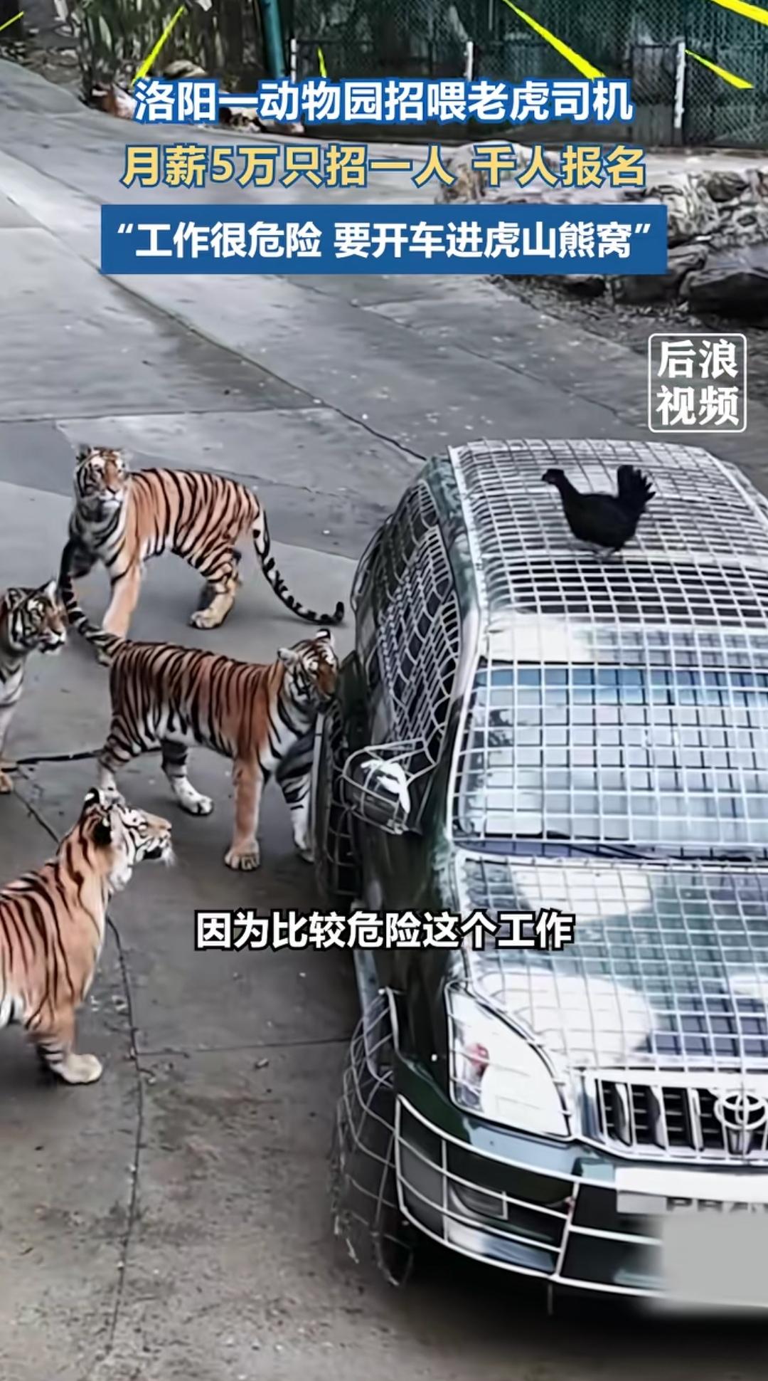 月薪5万招“兽王驾驶员”,洛阳一动物园引上千人竞聘 10月22日,洛阳栾川竹海野生动物园发布招聘:月薪5万招1名“兽王驾驶员”,需开车进虎山、熊窝投喂猛兽,带游客近距离观兽 。 园方证实信息属实,因“虎口瀑布”走红后客流量增三成,投喂人手不足 。要求持C1驾照满5年,胆大心细、熟动物习性,需通过心理测试和实地试岗 。 截至23日,报名已超千人,简历需投指定邮箱,报名截止11月15日 。