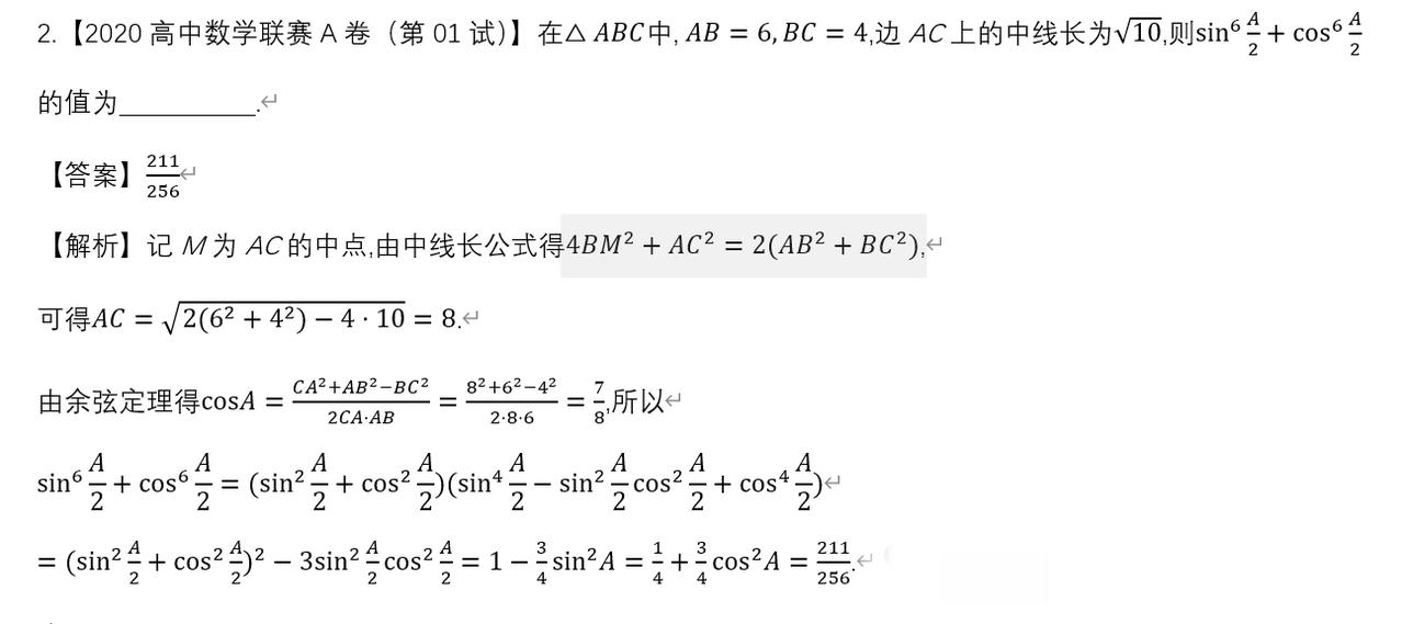与余弦定理有关的两道培优问题 高中数学的原点 高中