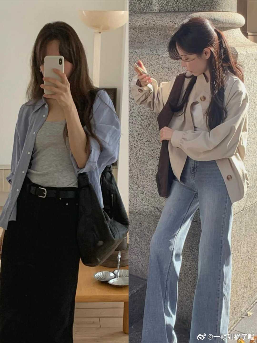 姐妹们, 叠穿才是秋天的灵魂啊!衬衫外搭短款风衣,时髦度直接拉满~穿搭穿搭灵感穿