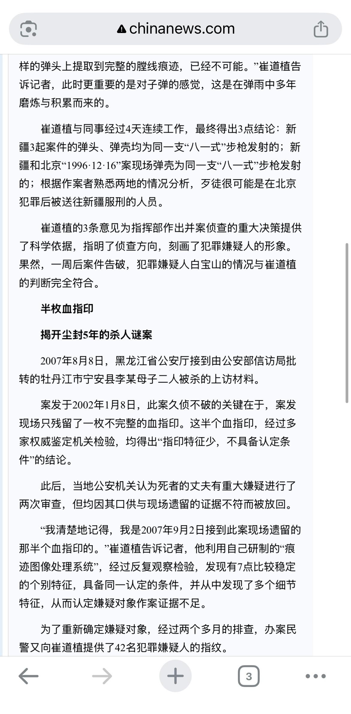 看了下《神探之痕迹》的故事,是以崔道植为原型改编的。 查了一下崔道植,说一句“神探”都算是谦让 他是全国公安第一代刑事技术警察、中国首席枪弹痕迹鉴定专家,享受国务院政府特殊津贴,被誉为中国的“福尔摩斯”、中国“刑警之魂”、公安战线的“瑰宝” ,中国警界重大疑难刑事案件痕迹鉴定的“定海神针” 。 举两个例子吧: 七八十年代,在没有DNA技术的年代,崔道植利用留在受害者脸部的牙痕以及受害者腹部嫌疑犯指甲残片,分别侦破了发生在哈尔滨市和牡丹江市的两起命案,开创了通过指甲、牙痕同一认定侦破疑难案件的先河。 1996-1997年,新疆和北京先后发生持枪袭军袭警抢劫案,被公安部列为1997年“中国刑侦一号案”,国际刑警组织也将此案列为当年国际第三号刑侦重案。崔道植应邀对案件进行了子弹痕迹分析,鉴定两地枪案弹头和弹壳由同一支“八一式”步枪发射,从而锁定嫌疑人是在北京犯罪后被送往新疆服刑的人员。一周后,警方根据他的鉴定便将此案告破,犯罪嫌疑人白宝山被绳之以法。 此外,他还为白银市连环杀人案、张君特大系列抢劫杀人案等一系列重大案件提供了技术鉴定,使案件成功告破。 1999年9月,他被公安部聘为首批特邀刑侦专家,2018年,他入选“改革开放40周年政法系统新闻影响力人物”,并获评“中国首席枪弹痕迹鉴定专家” ,2021年,他被中共中央授予“七一勋章”,是公安领域唯一获此荣誉的人。 电影由陈思诚执导,张译、马丽担任主演。刑事技术警察崔寻(张译 饰)走过半个多世纪,与同事屡破大案,这位秉承着“为人民服务”初心的神探,不仅见证了公安事业的发展,更见证了新中国的崛起。