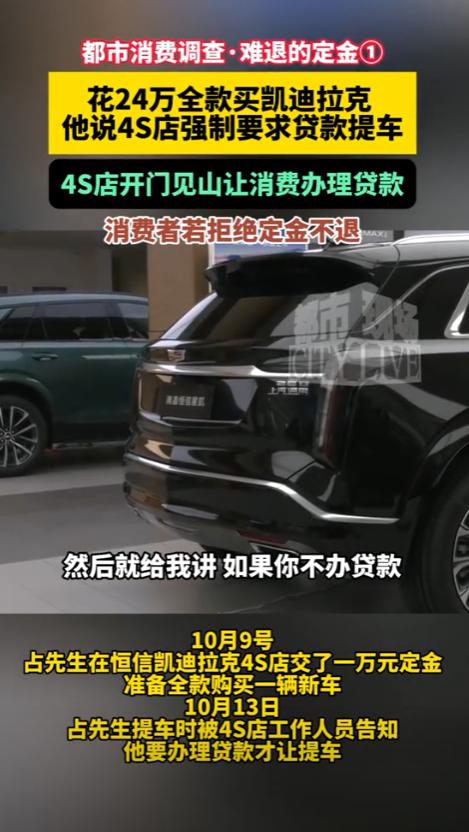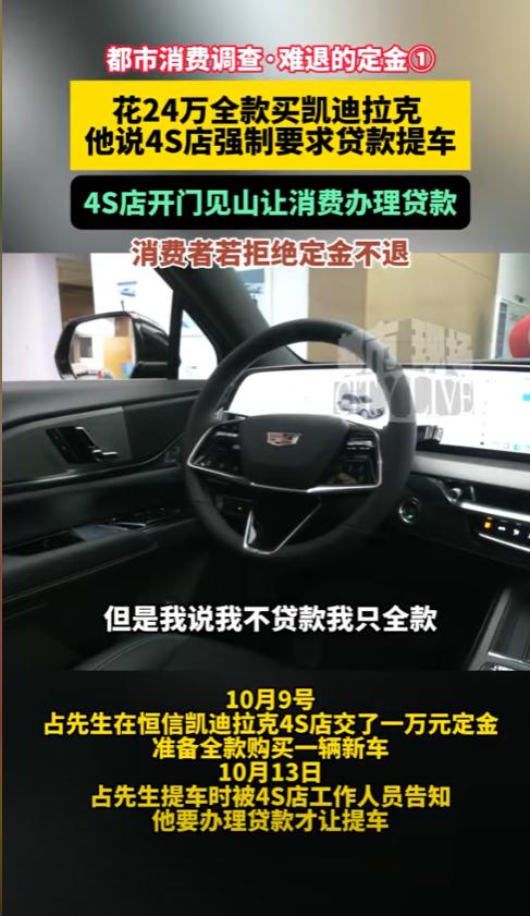 江西南昌,一男子在某 4s 店交了定金后,准备全款提车。谁知提车当天,却被 4s 店工作人员告知必须要办理贷款才能提车,男子叫陈师傅,是做生鲜配送的,为了拉货方便,攒了大半年钱想换辆 7 座 MPV,9 月底在城郊那家凯迪拉克 4S 店看中了一款车,谈好落地价 24 万 6。 当时销售小李拍着胸脯说 “陈哥,您放心,这是现车,交了定金随时能提,全款贷款都随您”,陈师傅觉得爽快,当场刷了 1 万 2 定金,合同上还特意让小李写了 “全款优先提车,无附加条件”。 10 月 15 号早上,陈师傅揣着用牛皮纸包好的 23 万 4 现金,还特意跟老婆说 “中午开新车回家吃红烧肉”,谁知道刚进 4S 店,小李就支支吾吾地把他领到一个办公室,出来个穿西装的男人,自称是销售总监老刘。 老刘一开口就浇了陈师傅一头冷水:“陈先生,您这款车现在走不了全款,必须办厂家的免息贷款,不然车提不了,定金也退不了”,陈师傅手里的现金包 “啪” 地放在桌上,“合同上写得清清楚楚,你这是耍无赖!” 老刘却慢悠悠地倒了杯茶:“合同是小李没看清政策,这款车厂家有贷款任务,全款系统录不进去,您办个 3 年免息,每月还几千块,也不影响您用钱,多好”,陈师傅气得手指头都在抖,“我差这几千块?我就是不想欠着钱,你们这是强买强卖!” 他掏出手机想拍合同,老刘赶紧伸手拦着,“陈先生,别激动,咱们商量着来,实在不行您再加点钱,走全款通道”,这话彻底惹火了陈师傅,他直接拿起现金包就往外走,“我不买了,退定金!” 可老刘却说 “定金是定车款,您单方面违约,退不了”,陈师傅没跟他废话,直接打了 12315 投诉,还联系了都市现场的记者,他觉得 “不能让他们这么欺负人,我要让更多人知道这套路”。 记者来的那天,4S 店的态度立马软了,老刘陪着笑说 “是我们政策传达错了,陈先生您别生气,全款能提,定金也能退,我们再补偿您 2000 块交通费”,陈师傅这才知道,原来 4S 店怕投诉影响行业评级,更怕贷款返点的猫腻被曝光。 中国汽车流通协会 2025 年发布的《汽车销售服务行业报告》里提到,4S 店每促成一笔汽车贷款,能从金融机构拿到 3%-5% 的返点,像 24 万的车,返点就有 7200-12000 块,比全款卖车赚得多,这才是他们逼着客户贷款的真正原因。 《消费者权益保护法》第 9 条也明确规定,消费者享有自主选择商品或者服务的权利,4S 店强制贷款的行为,本身就违反了法律。陈师傅最后没买那款车,他说 “心里膈应,再便宜也不买了”,你在买车时遇到过 4S 店的捆绑销售吗?当时是怎么维护自己权益的呀?
