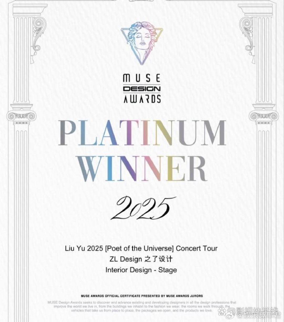 刘宇宇宙诗人巡演获得缪斯设计奖舞台类别最高荣誉铂金奖!