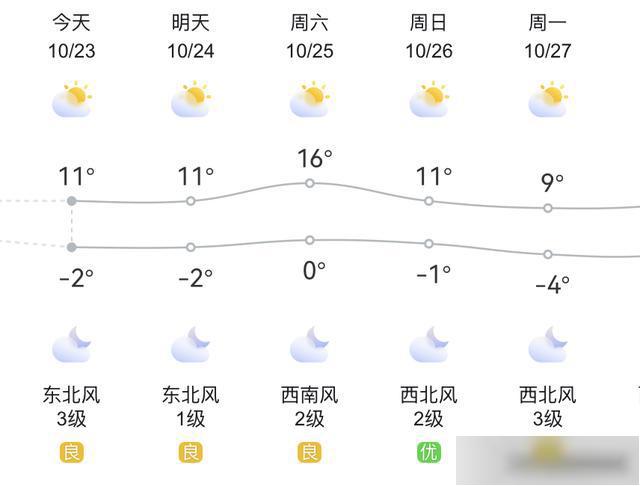 10月22日,记者从沈阳市气象部门获悉,预计未来五天(23日-27日),沈城都将被阳光温柔包裹,天气保持平稳态势,北风把天空打扫得一尘不染,空气干爽宜人,气温小幅回升,最高气温11℃~16℃,最低气温大多数时间里仍在0℃以下。