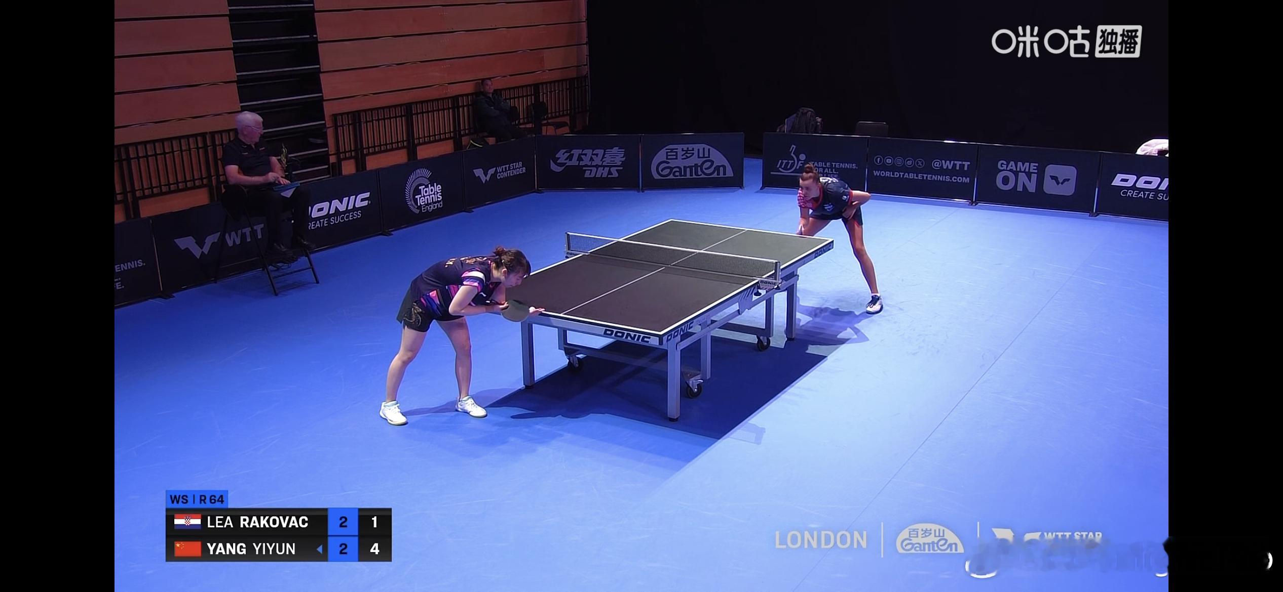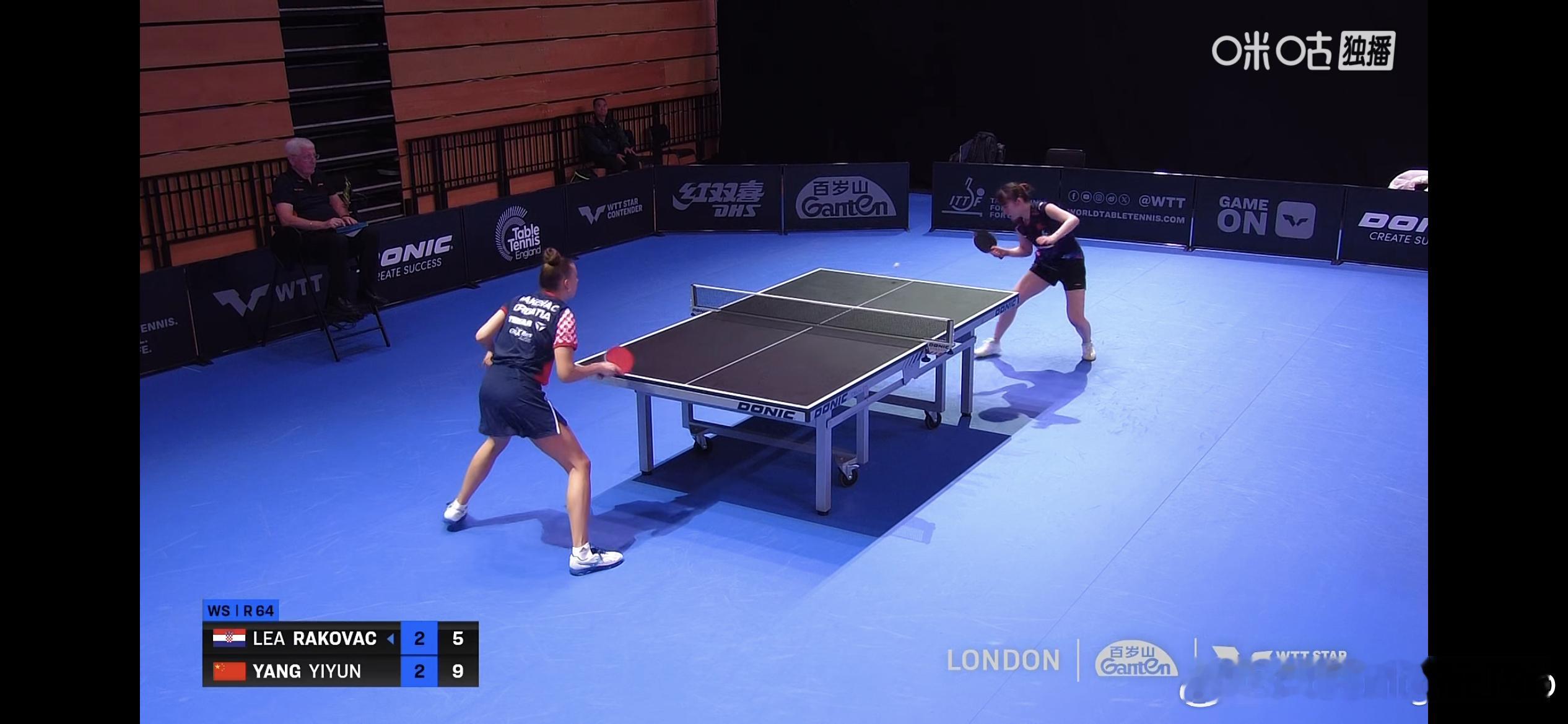 WTT球星挑战赛伦敦站2025 女单1/32决赛:🇨🇳杨屹韵3比2拉科瓦奇?